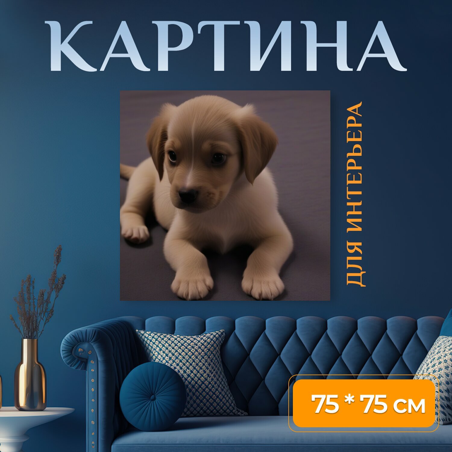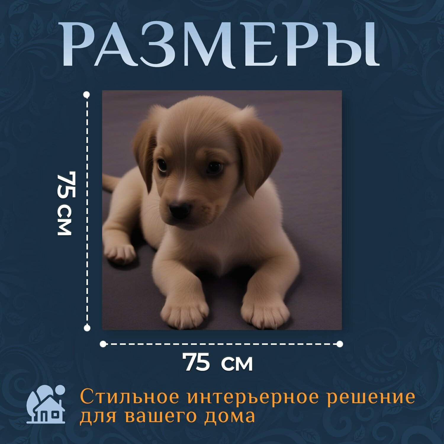 Купить Картина на холсте любителям природы "Животные, щенок, лежит" на подрамнике 75х75 см. для интерьера