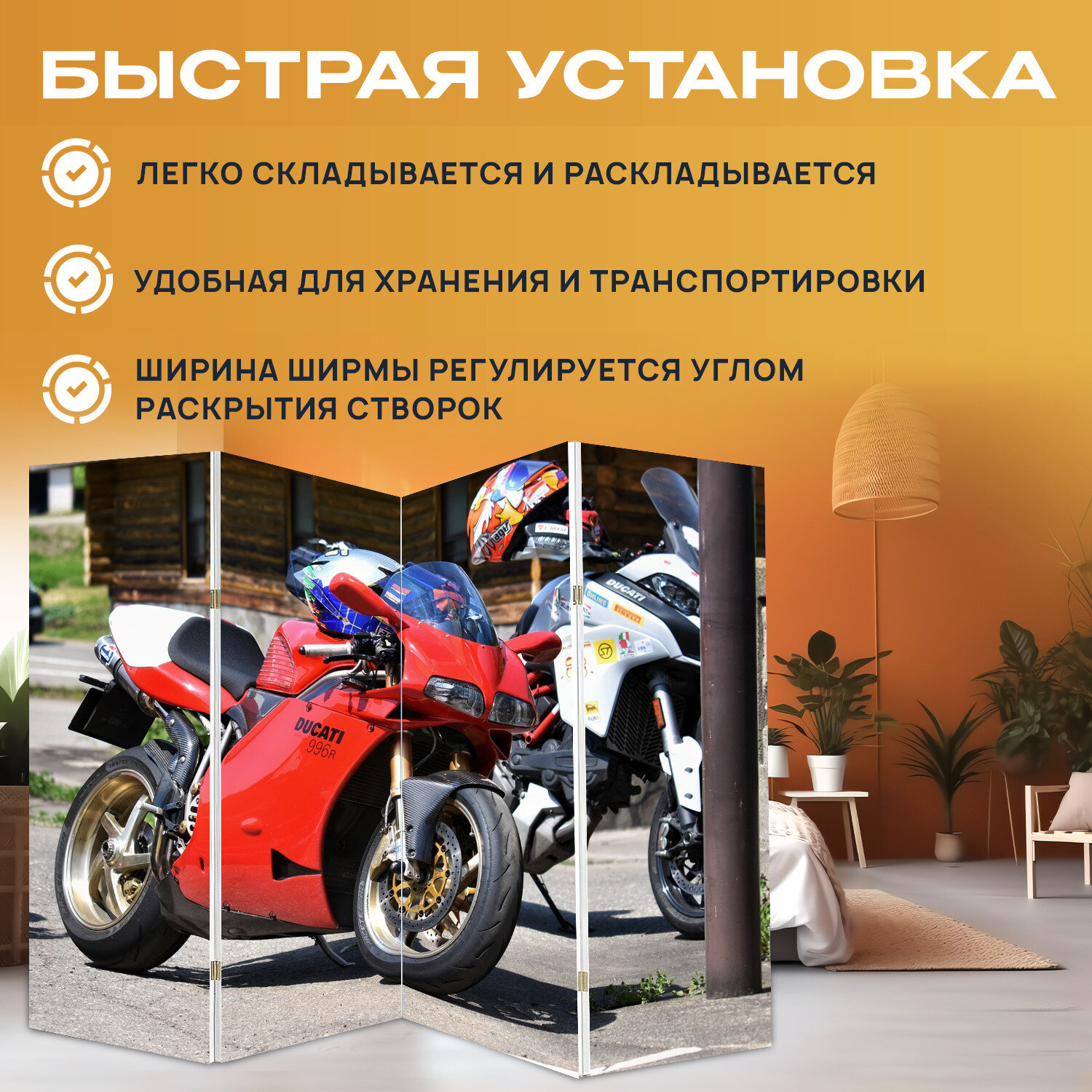 Купить Ширма "Трафик, транспортное средство, велосипед" раскладная перегородка для зонирования с принтом на холсте