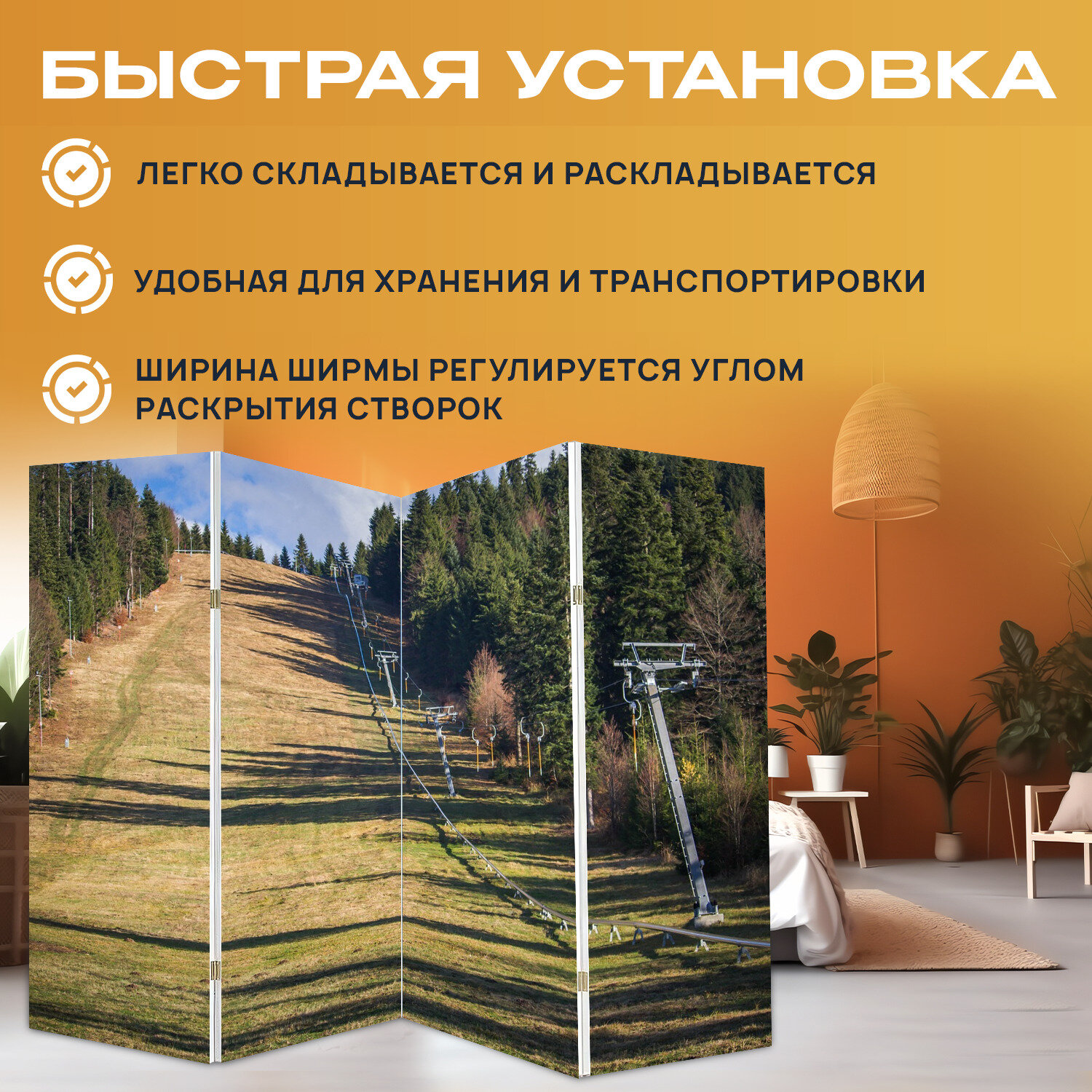 Купить Ширма "Лыжный курорт, борсек, трансильвания" раскладная перегородка для зонирования с принтом на холсте
