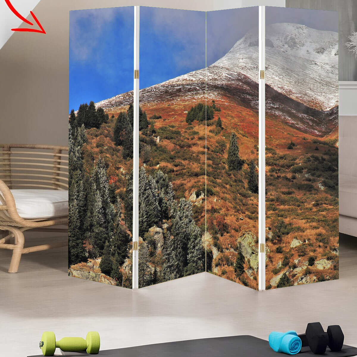 Ширма "Альпы, снежный, вверх" перегородка для зонирования комнаты с принтом 280x175 см. на холсте