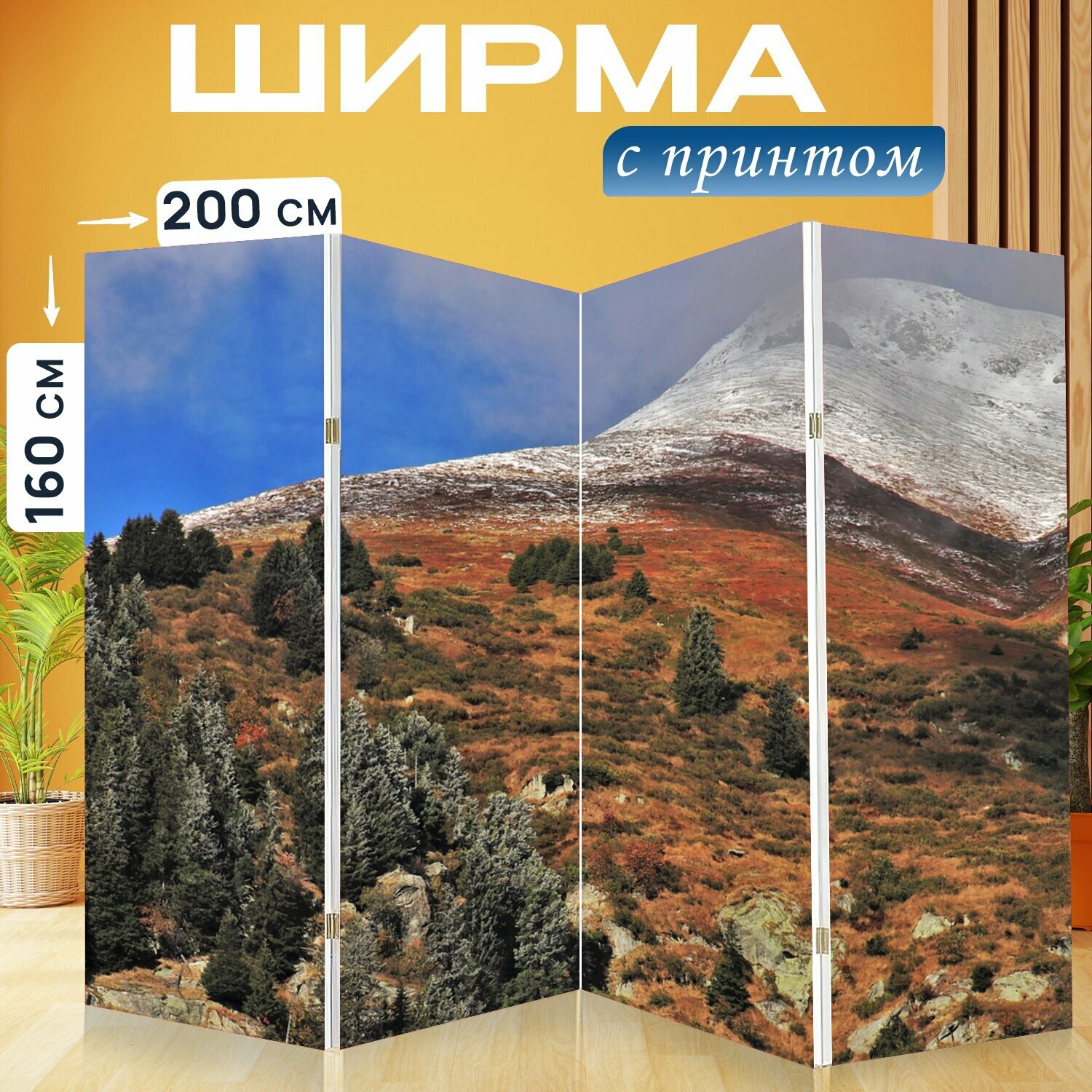 Ширма "Альпы, снежный, вверх" раскладная перегородка для зонирования с принтом на холсте интересное: