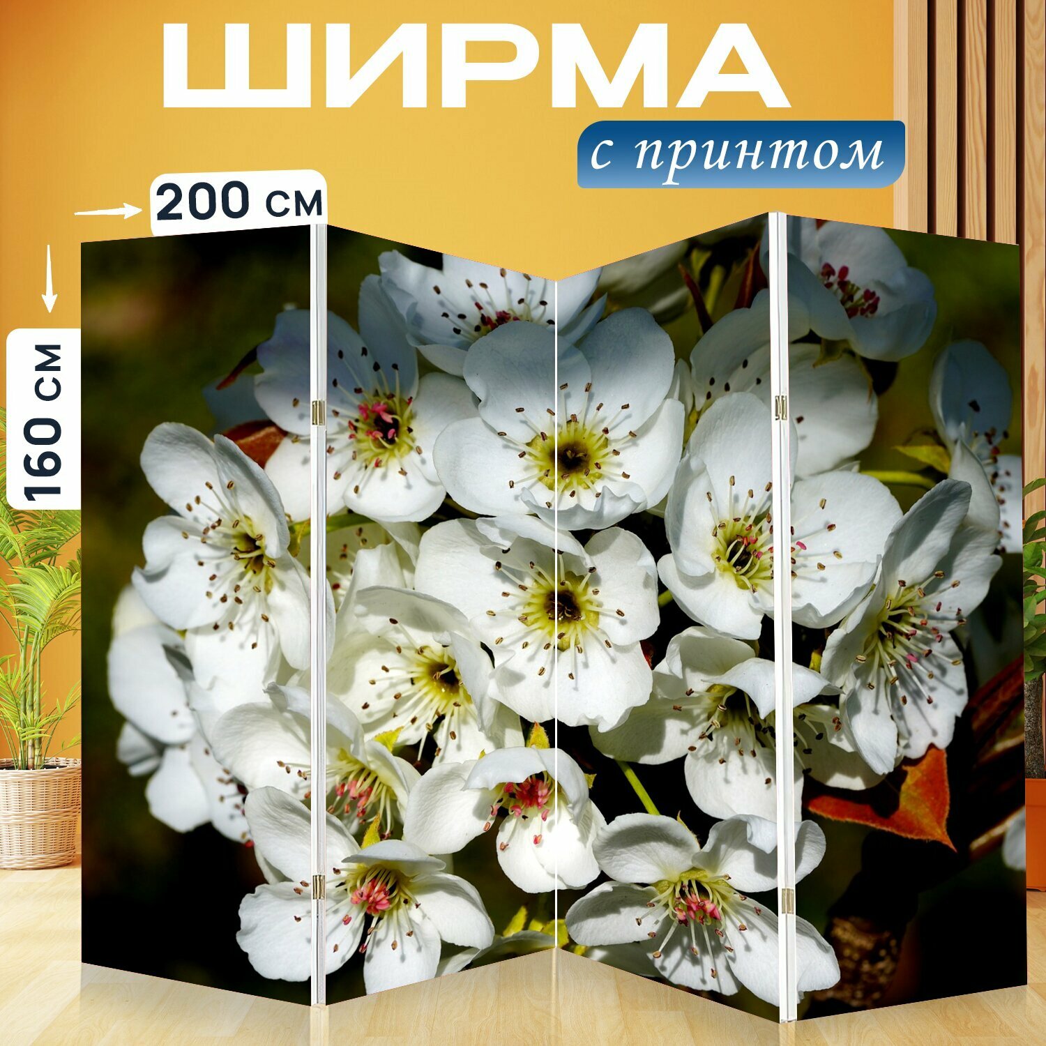 Ширма "Груша, цветок груши, фрукты" раскладная перегородка для зонирования с принтом на холсте интересное: