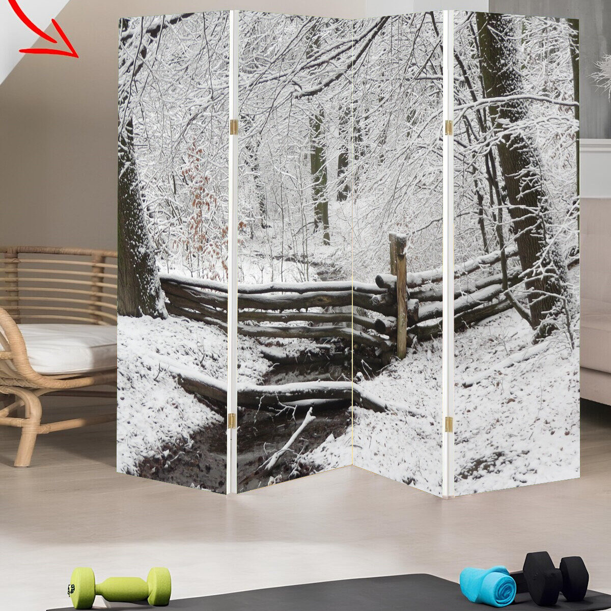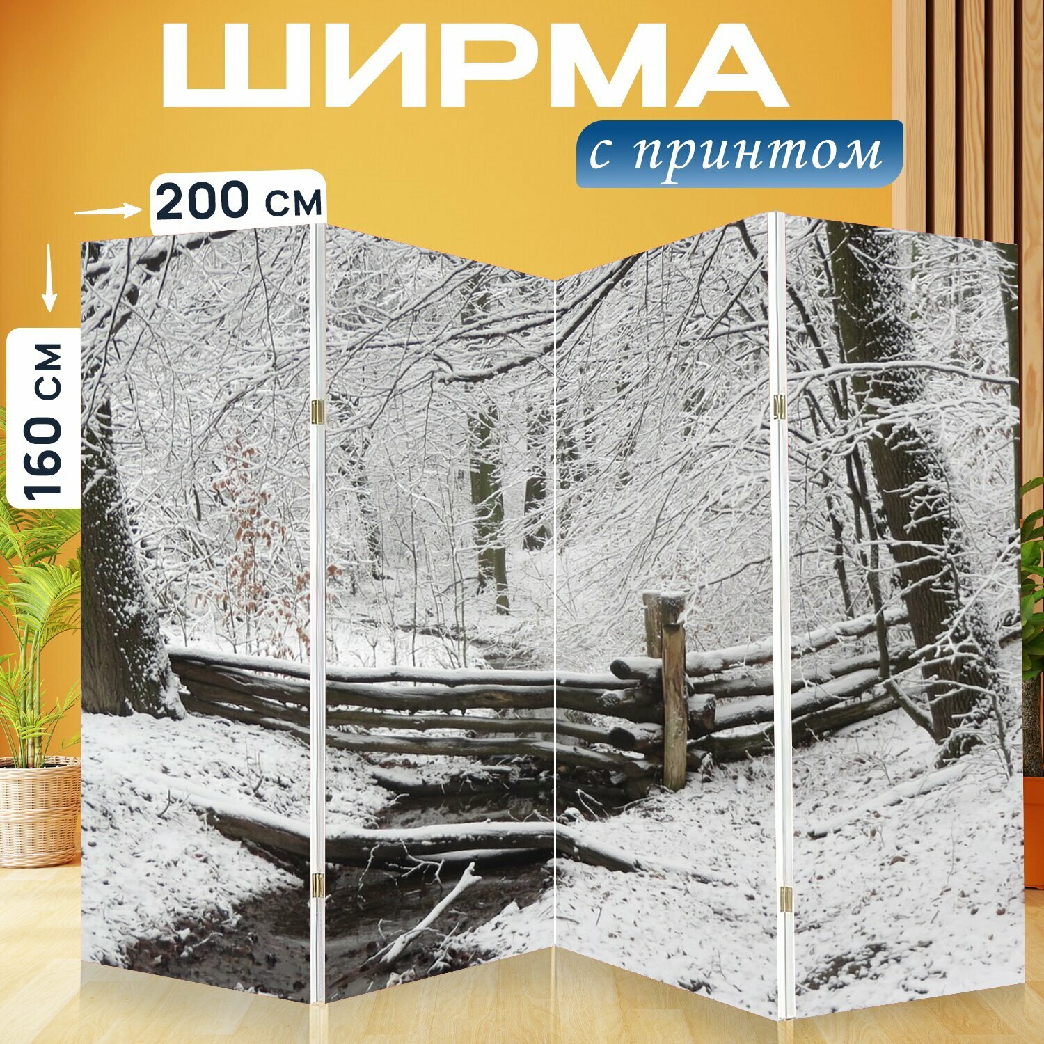 Ширма "Зима, лес, ручей" перегородка для зонирования комнаты с принтом 280x175 см. на холсте