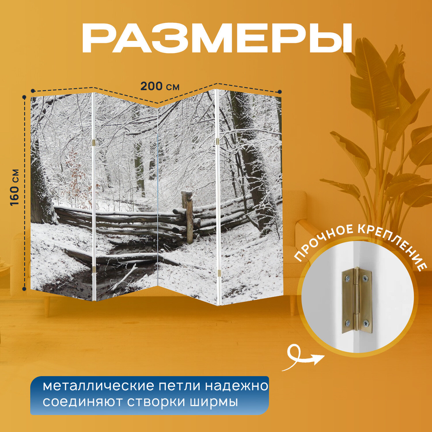 Ширма "Зима, лес, ручей" раскладная перегородка для зонирования с принтом на холсте интересное: