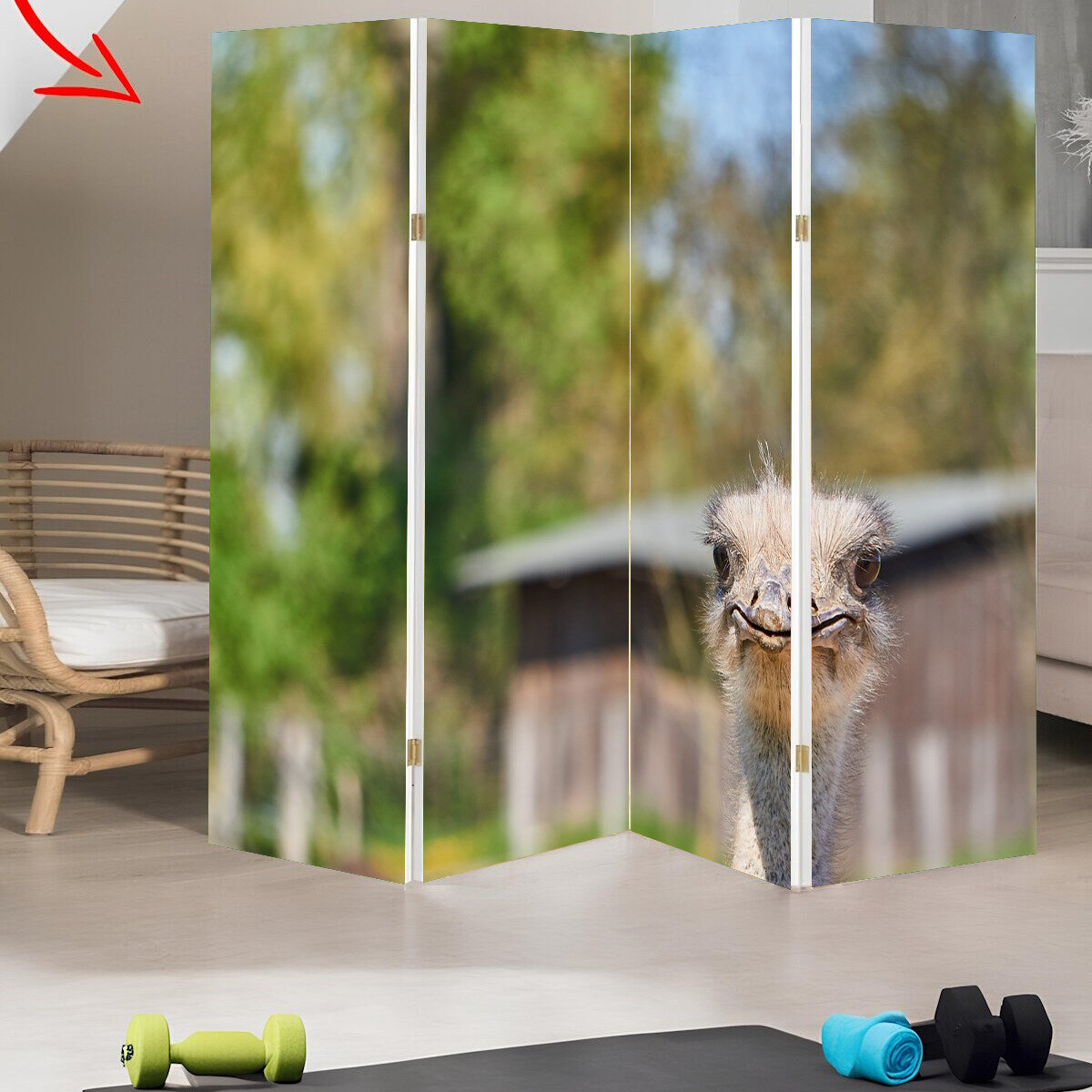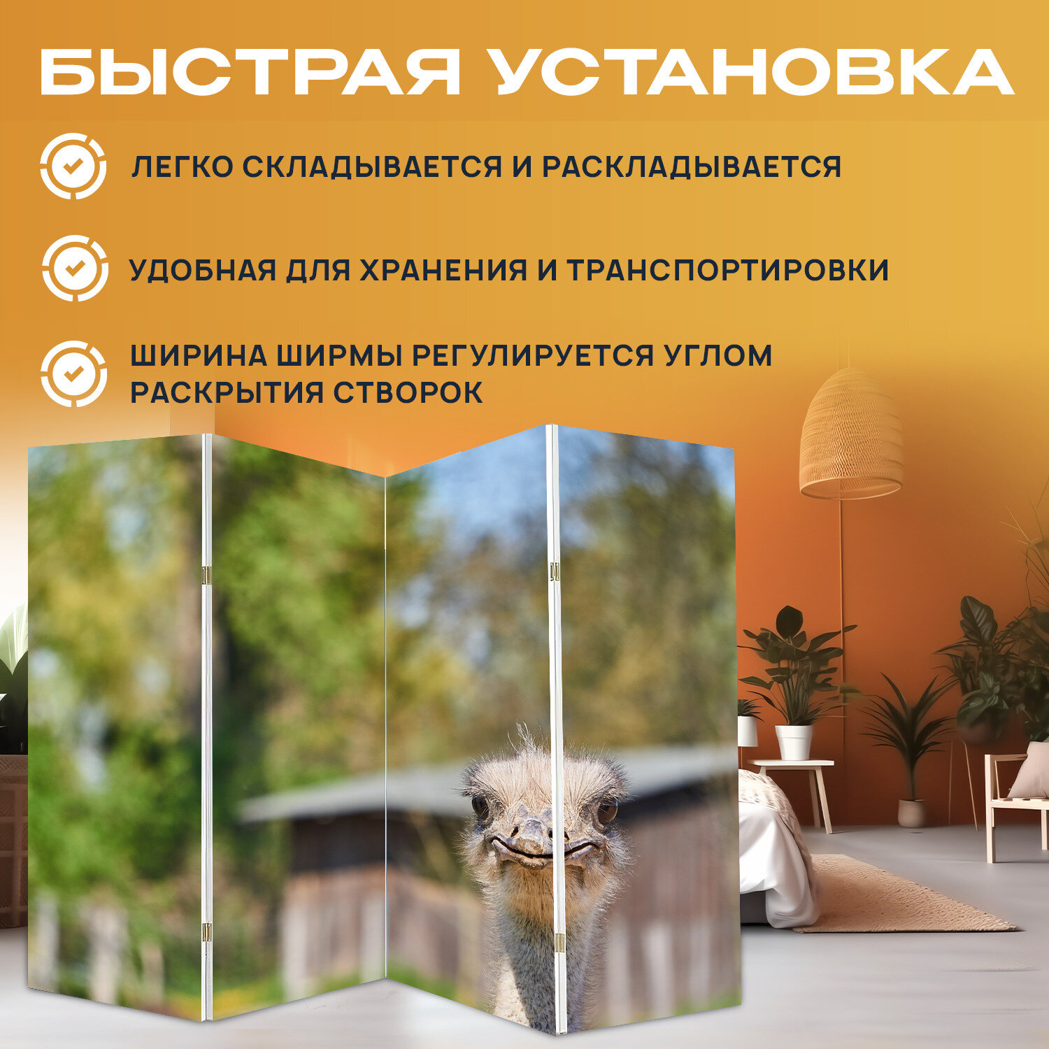 Ширма "Страус, птица, животное" раскладная перегородка для зонирования с принтом на холсте интересное: