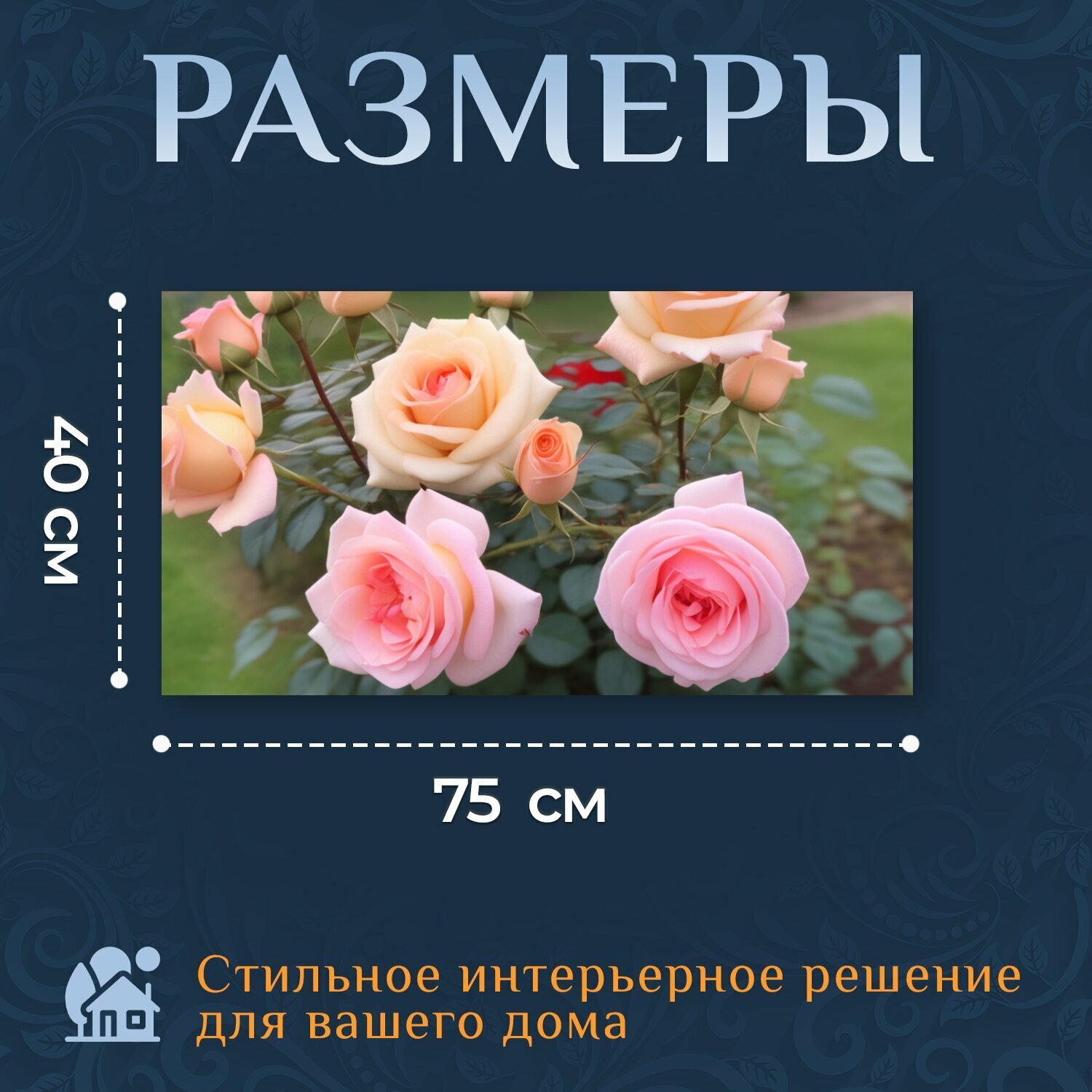 Картина на холсте любителям природы "Цветы, роза, в саду" на подрамнике 75х40 см. для интерьера интересное: