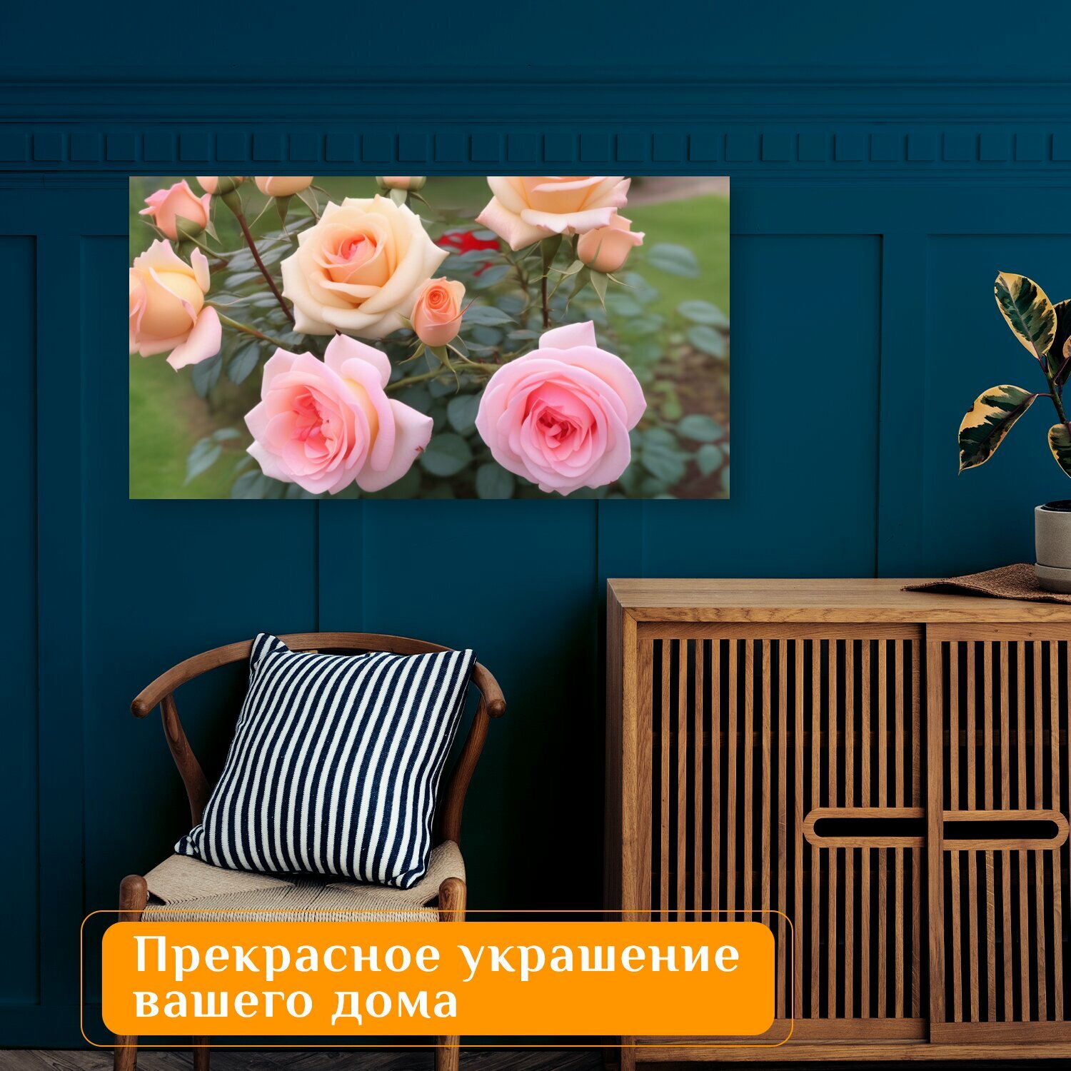 Купить Картина на холсте любителям природы "Цветы, роза, в саду" на подрамнике 75х40 см. для интерьера