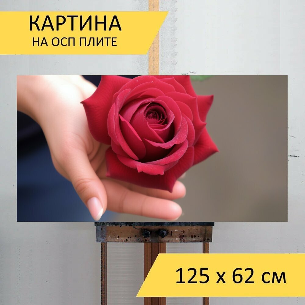 Картина на ОСП любителям природы "Цветы, роза, на ладони" 125x62 см. для интерьера на стену интересное: