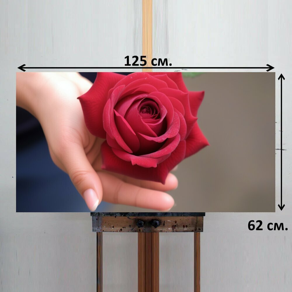Купить Картина на ОСП любителям природы "Цветы, роза, на ладони" 125x62 см. для интерьера на стену