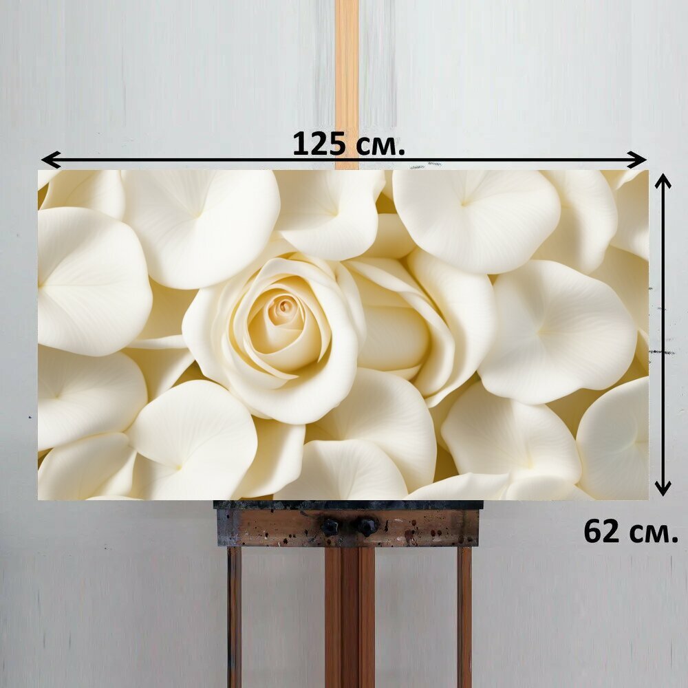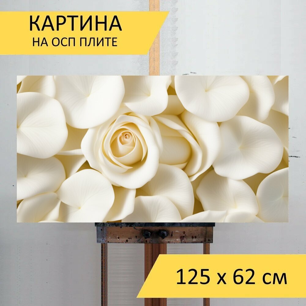 Картина на ОСП любителям природы "Цветы, роза, белые лепестки" 125x62 см. для интерьера на стену интересное:
