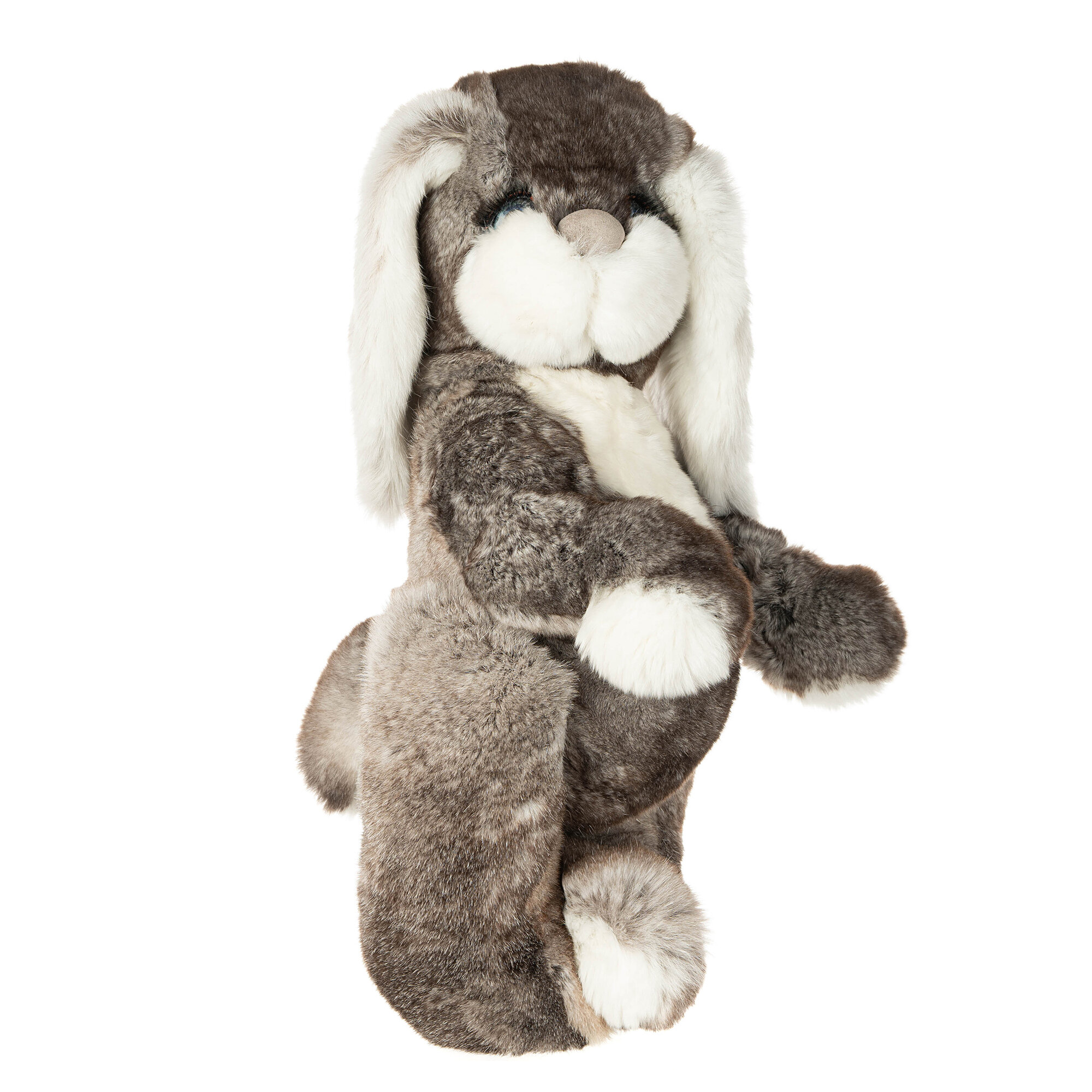 Купить Мягкая игрушка зайка тедди из натурального меха Марго серо-белый в кофте