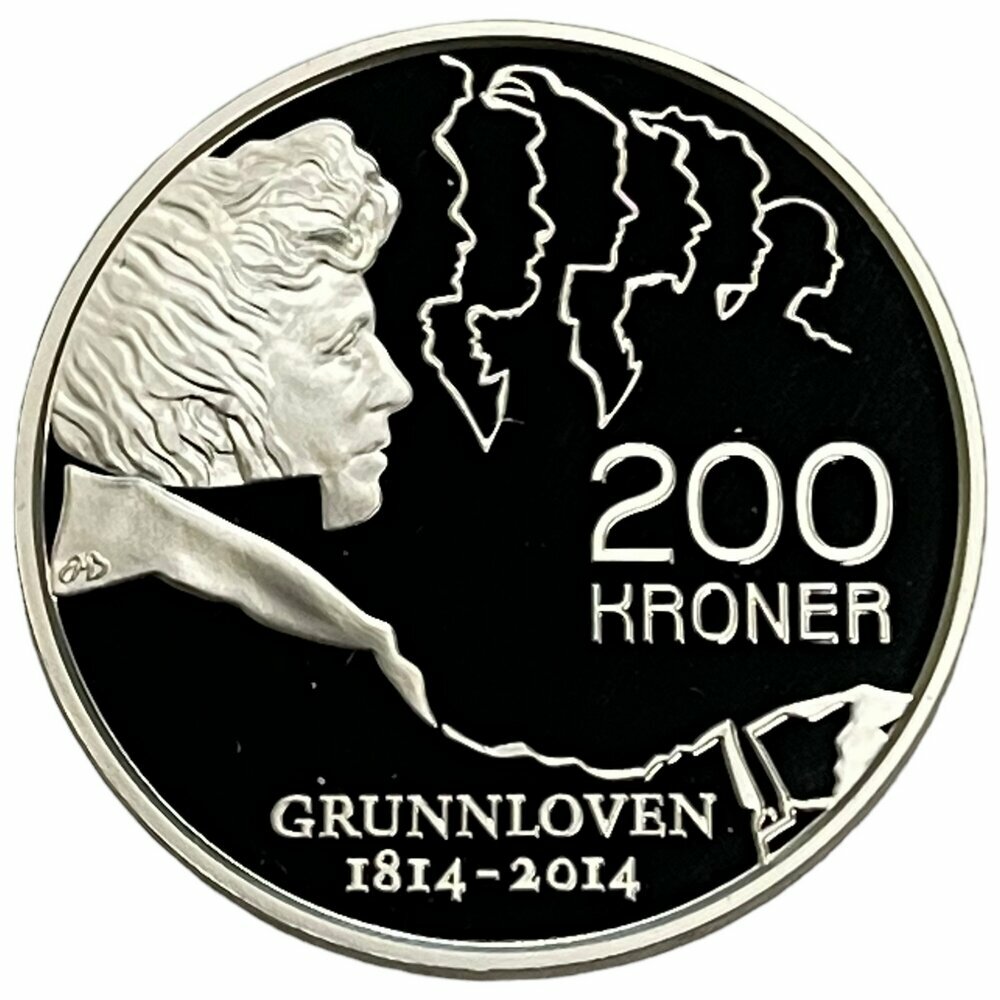 Норвегия 200 крон 2014 г. (200 лет Конституции) (Proof) в коробке с сертификатом интересное: