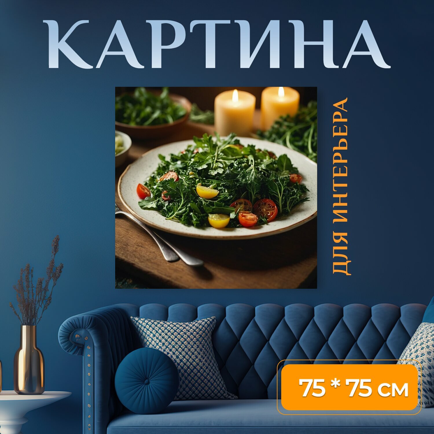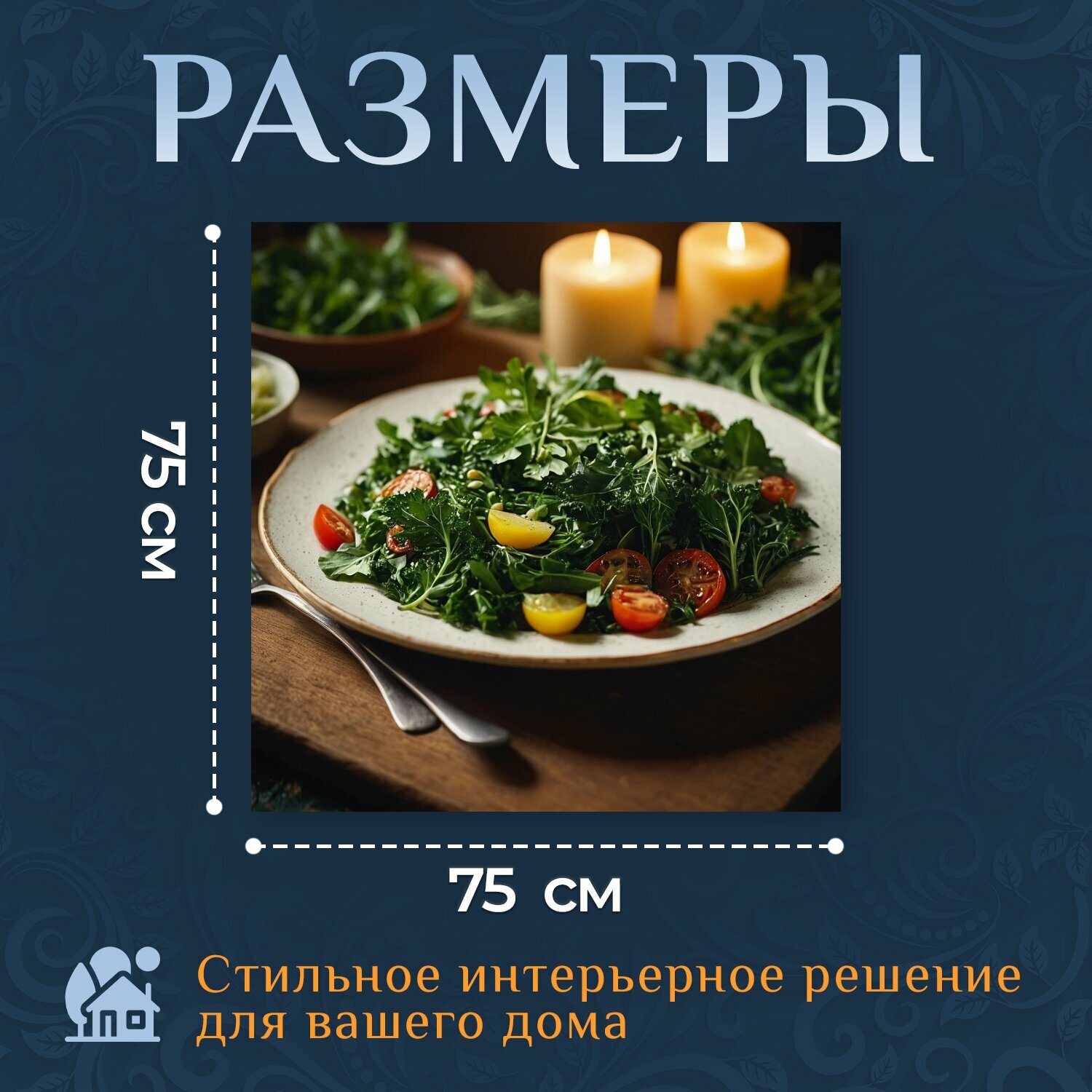 Картина на холсте любителям вкусного "Еда, салат, много зелени" на подрамнике 75х75 см. для интерьера интересное: