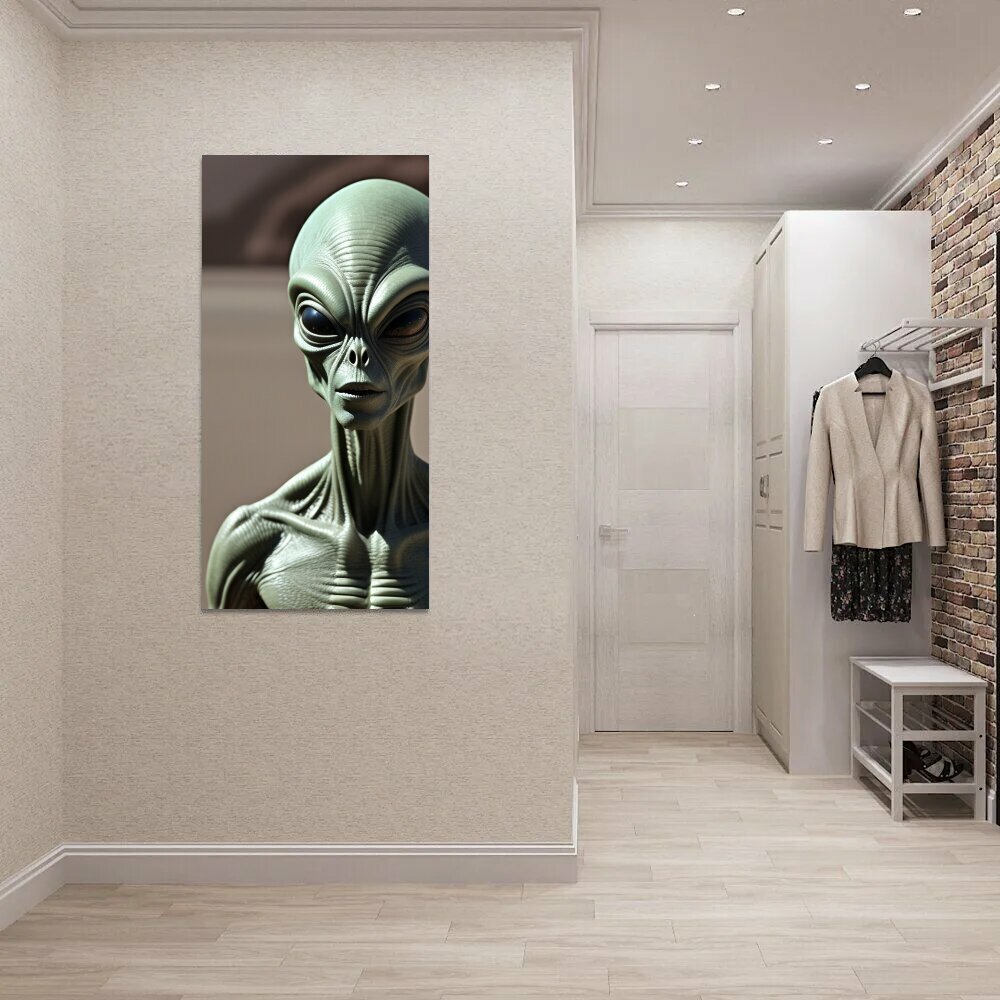 Вертикальная картина на ОСП фантастам "Космос, пришельцы, на планете" 62x125 см. для интерьера на стену интересное: