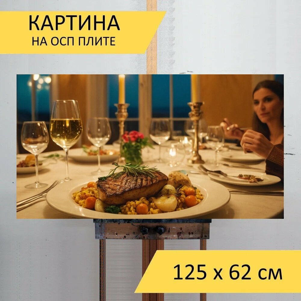 Картина на ОСП любителям вкусного "Еда, ресторан, ужин с девушкой" 125x62 см. для интерьера на стену интересное: