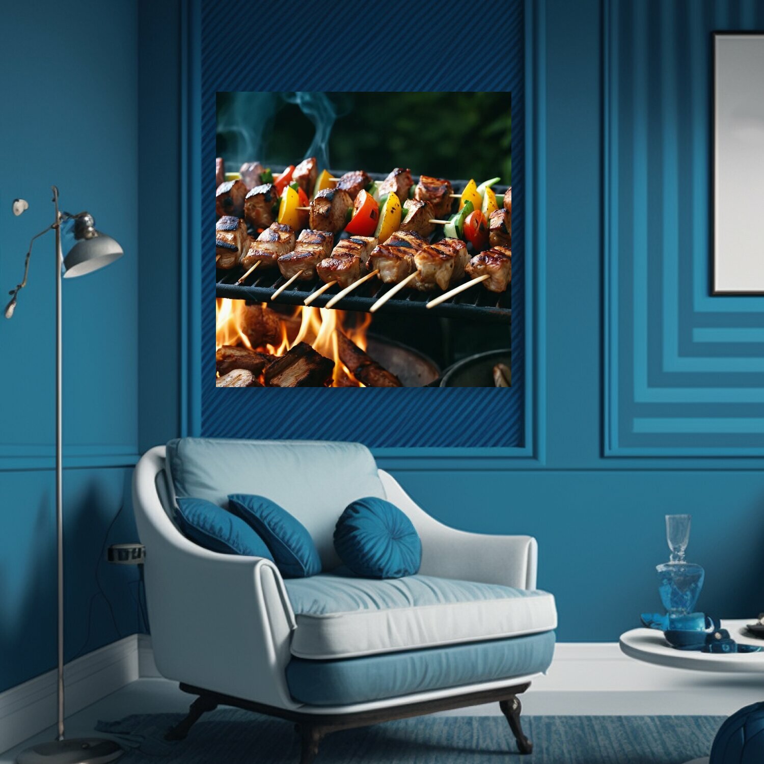 Картина на холсте любителям вкусного "Еда, мясные блюда, на костре" на подрамнике 75х75 см. для интерьера интересное: