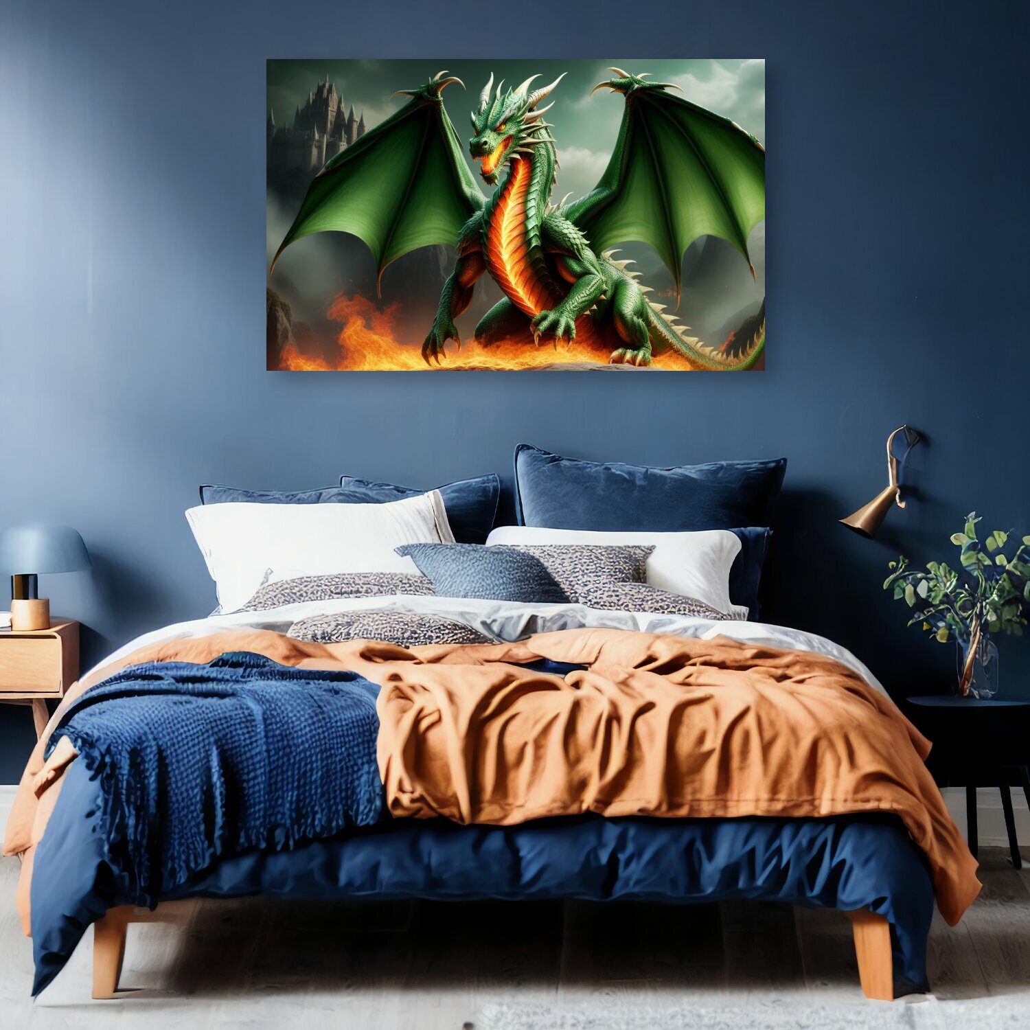 Картина на холсте праздники "Год дракона, дракон, в огне" на подрамнике 120х75 см. для интерьера интересное: