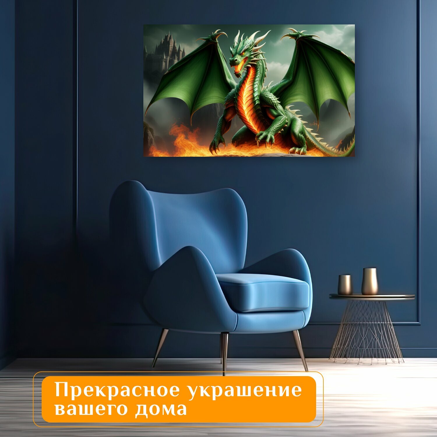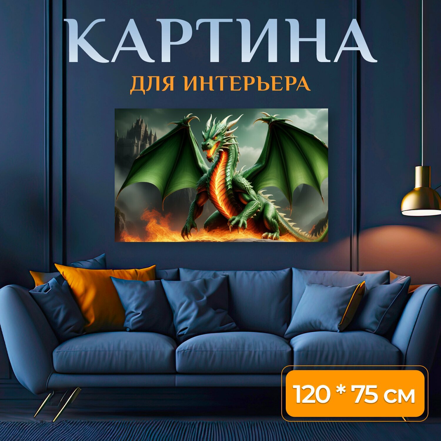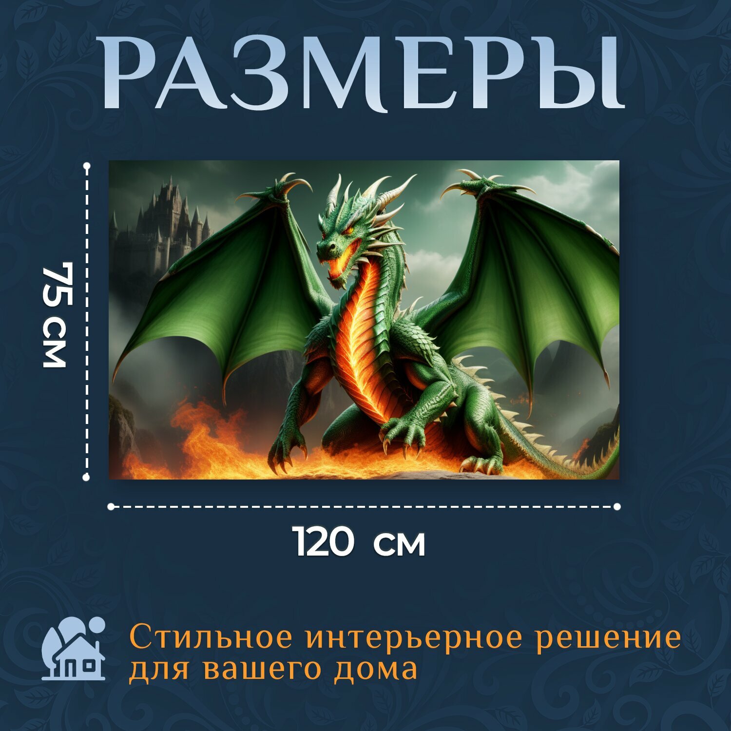 Купить Картина на холсте праздники "Год дракона, дракон, в огне" на подрамнике 120х75 см. для интерьера