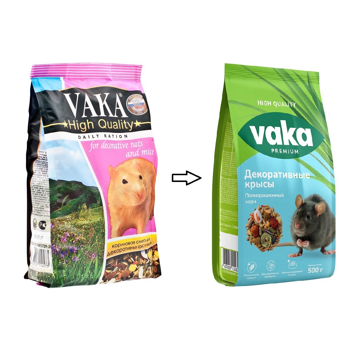 Вака HIGH QUALITY корм для декоративных крыс и мышей (500 гр х 2 шт)