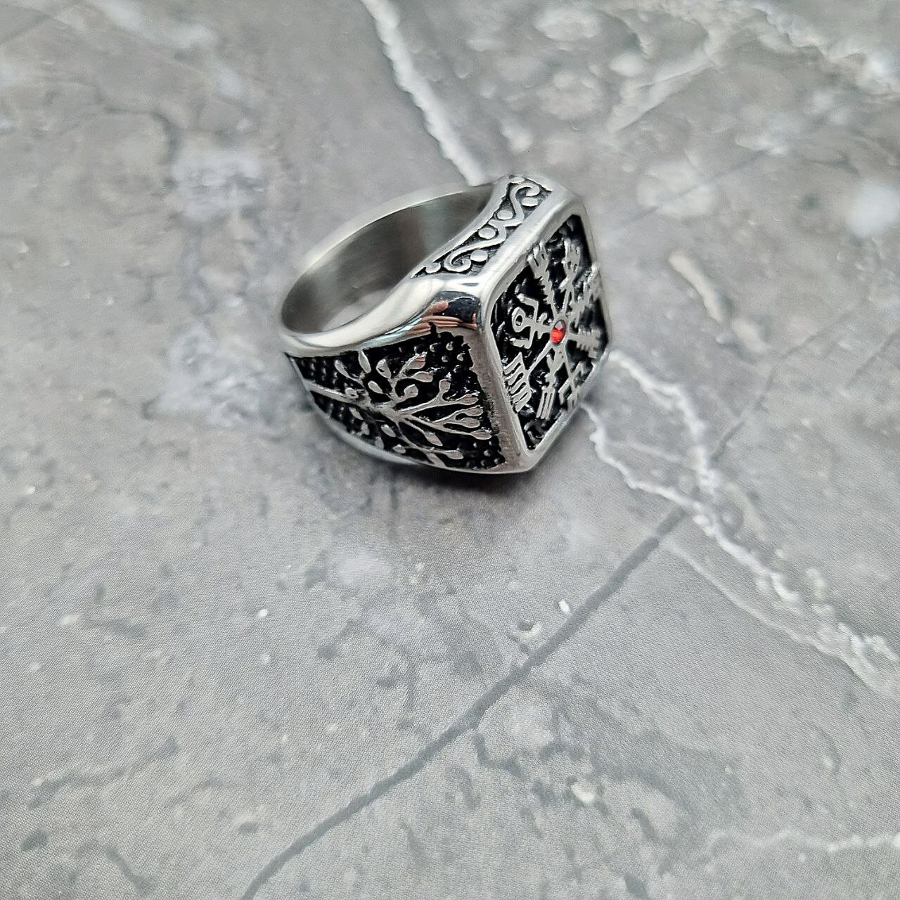 Кольцо печатка из нержавеющей стали Вегвизир с красным кристаллом, мужское, цвет серебристый, 19 размер