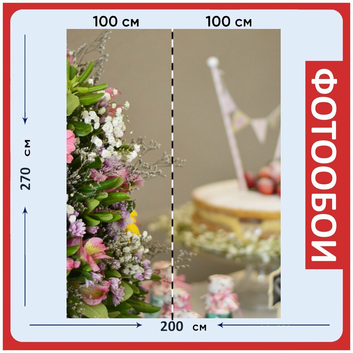 Фотообои ударопрочные моющиеся "Цветок, цветочная композиция, торт" 300x270 см. флизелиновые на стену