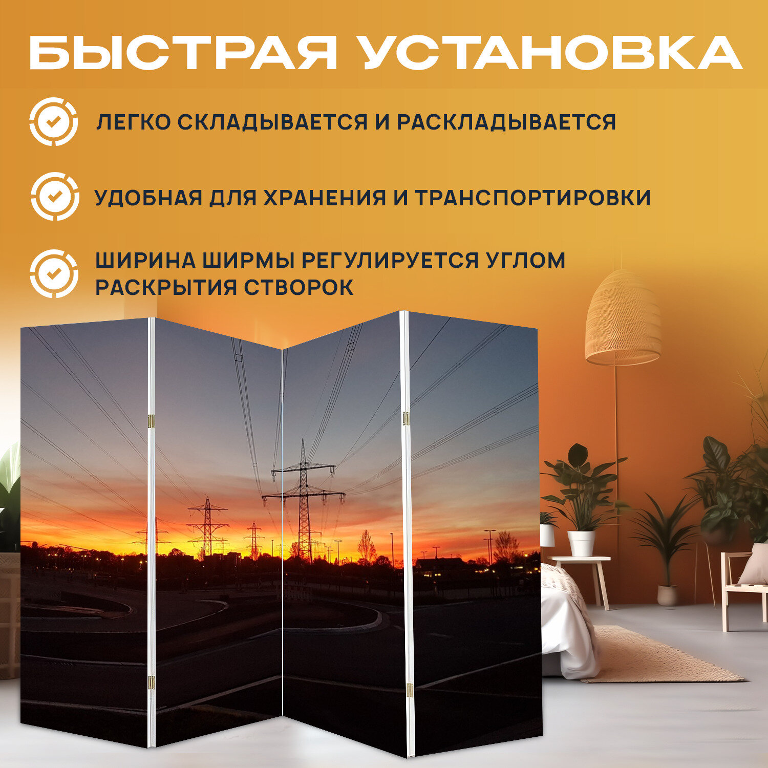 Ширма "Строительные работы, полюс питания, заход солнца" раскладная перегородка для зонирования с принтом на холсте интересное: