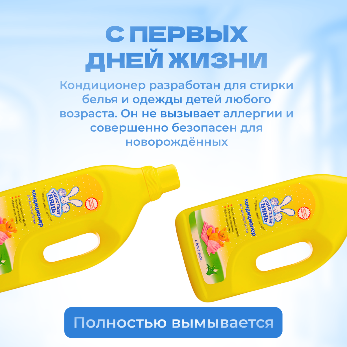 Ушастый Нянь Кондиционер для детского белья с Алоэ вера, 1 л, 1 кг
