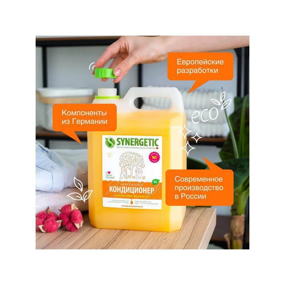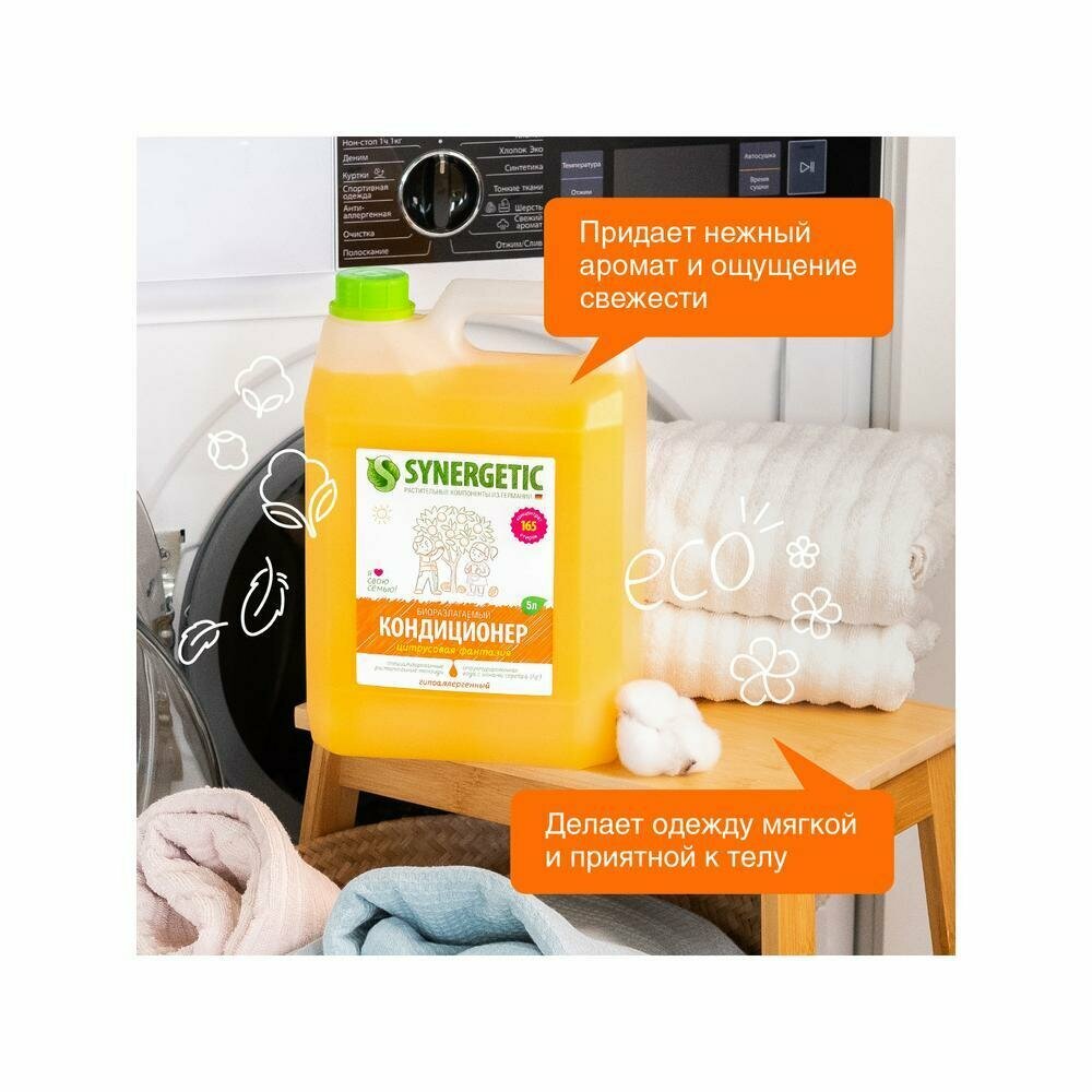 Кондиционер для белья Synergetic "Цитрусовая фантазия", биоразлагаемый, 5 л