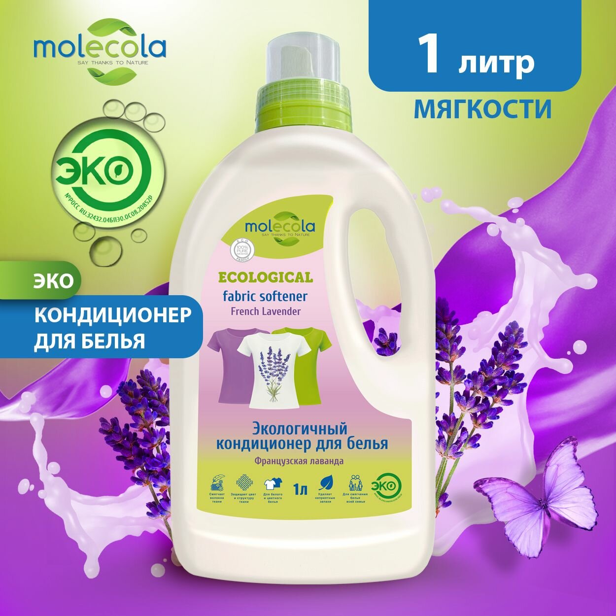 MOLECOLA Экологичный конц-ный кондиционер-опо-тель д/белья"Французская лаванда"" (French Lavender)1л