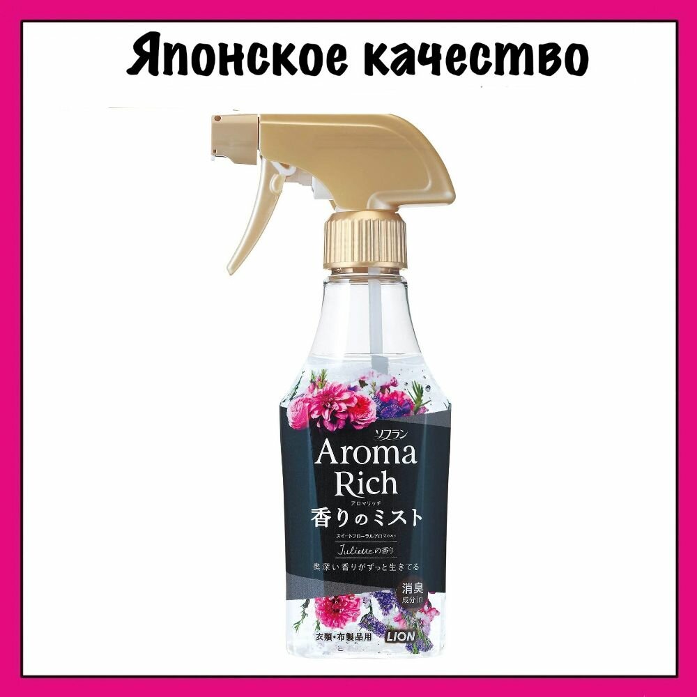 Купить LION Спрей освежающий Aroma Rich Juliette для разглаживания складок и удаления неприятного запаха на одежде, аромат садовых цветов 280 мл. бутылка с распылителем