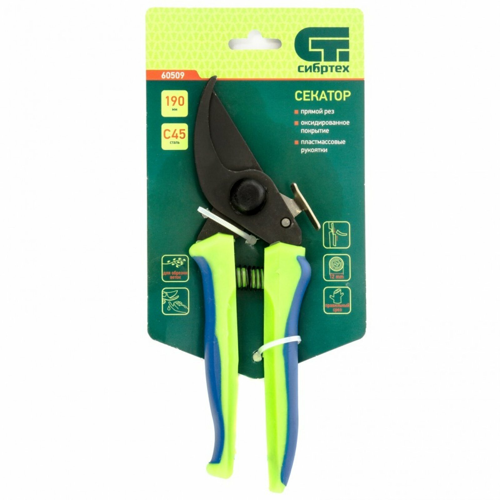 Секатор прямого реза, 190 мм, пластиковые рукоятки, Горизонт, Россия, Сибртех ( 60509 )