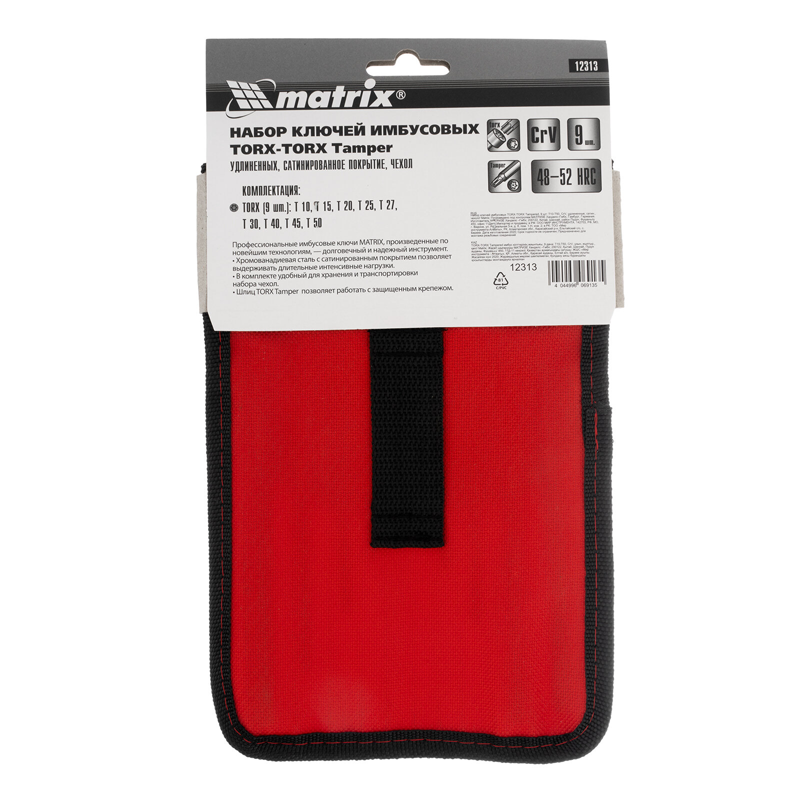 Набор ключей TORX Matrix 12313, TORX-TorxTamper: 9 шт, T10-T50, CrV, удлиненных, с сатинированным покрытием, чехол