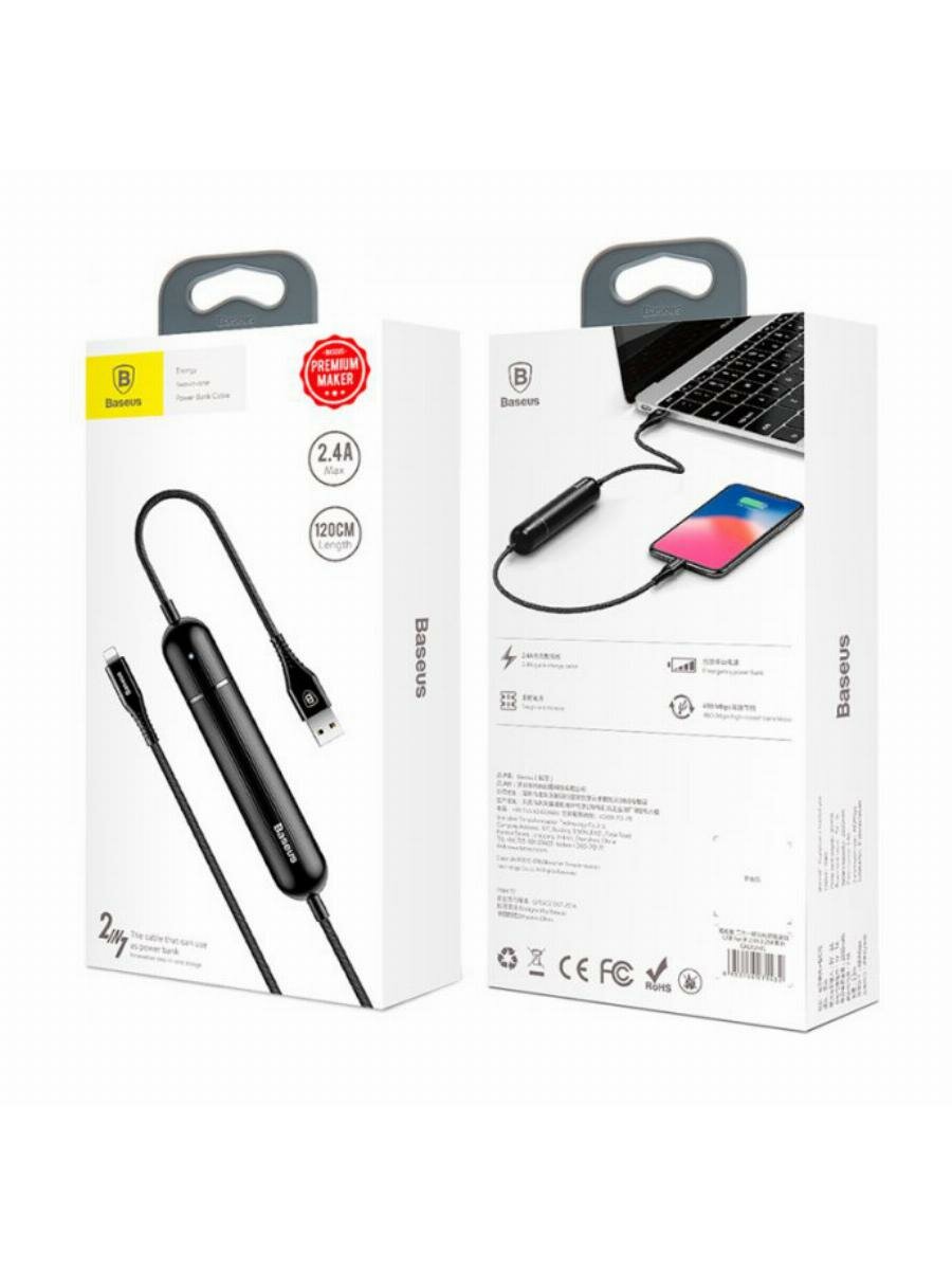 Внешний аккумулятор с кабелем BASEUS Energy 2-in-1, 2500 mAh с Кабелем USB to Lightning 1,2м, 2.4A, Черный интересное: