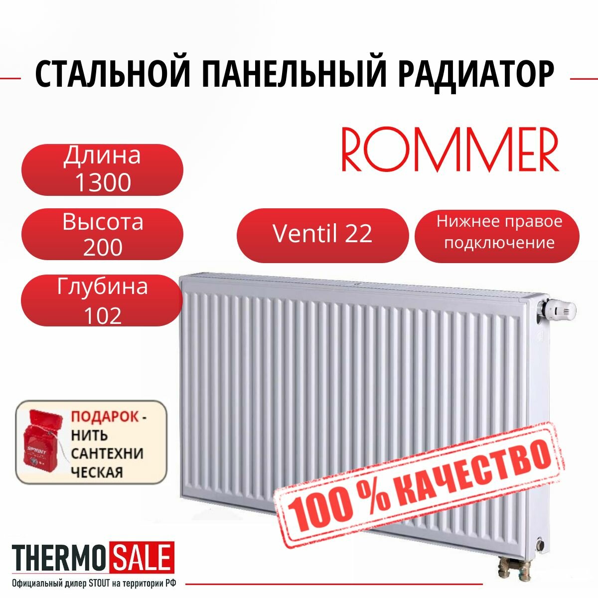 Ниже Вы можете прочитать отзывы на Радиатор стальной панельный ROMMER 200х1300 нижнее подключение Venti 22/200/1300 Нить сантехническая, ознакомится с подробными характеристиками, посмотреть интересные обзоры и фотографии на Радиатор стальной панельный ROMMER 200х1300 нижнее подключение Venti 22/200/1300 Нить сантехническая.