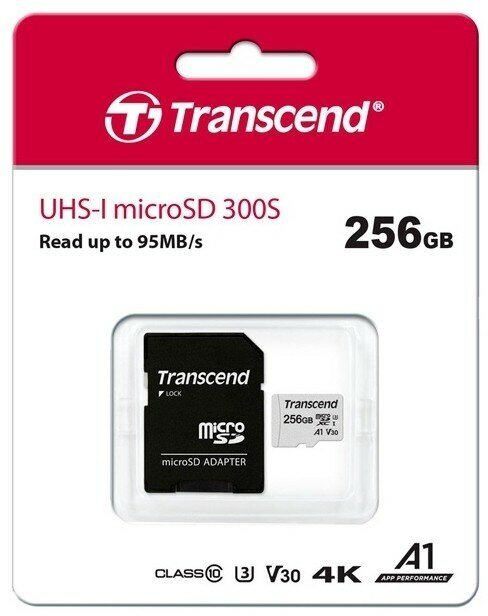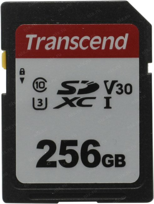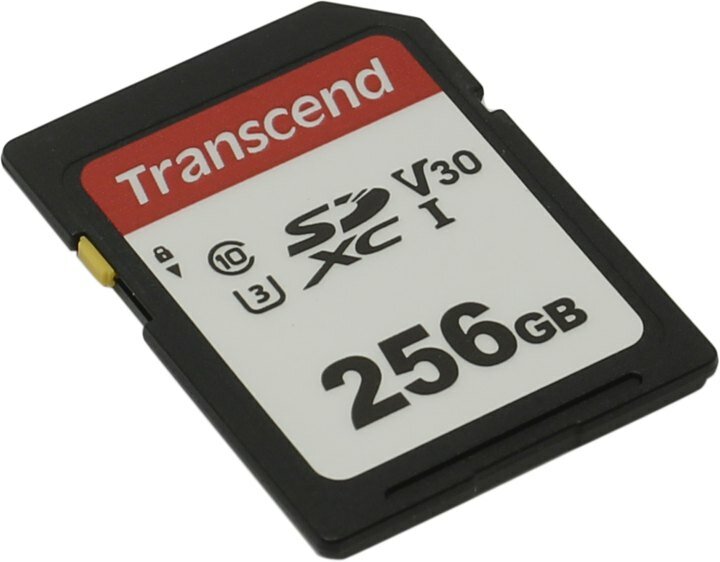 Карта памяти Transcend SDXC 256 ГБ Class 10, V30, UHS-I U3, R/W 100/40 МБ/с, 1 шт., черный