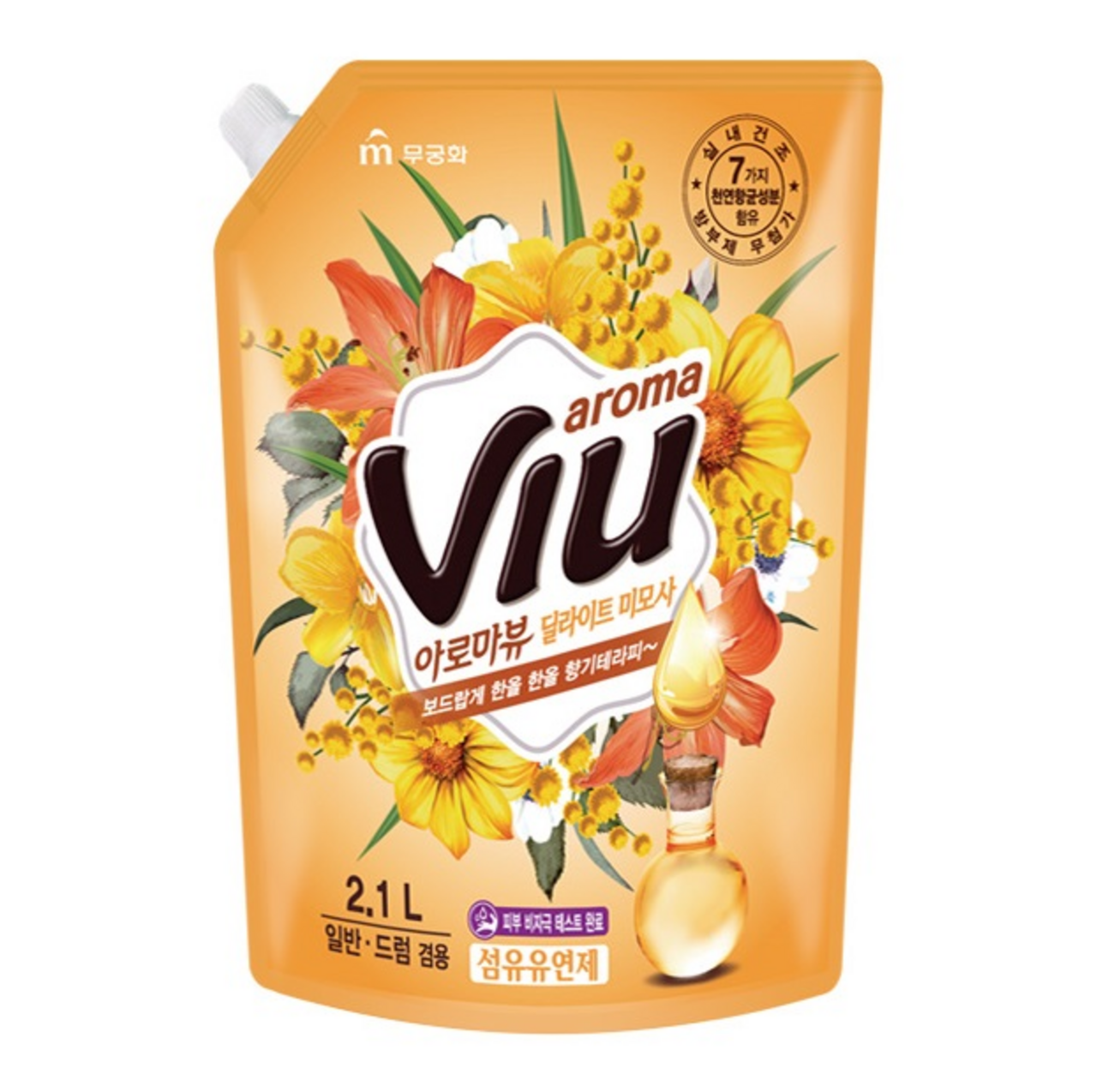 Mukunghwa Aroma Viu Golden Mimosa Антибактериальный ароматизирующий кондиционер Золотая мимоза 2,1 л в мягкой упаковке