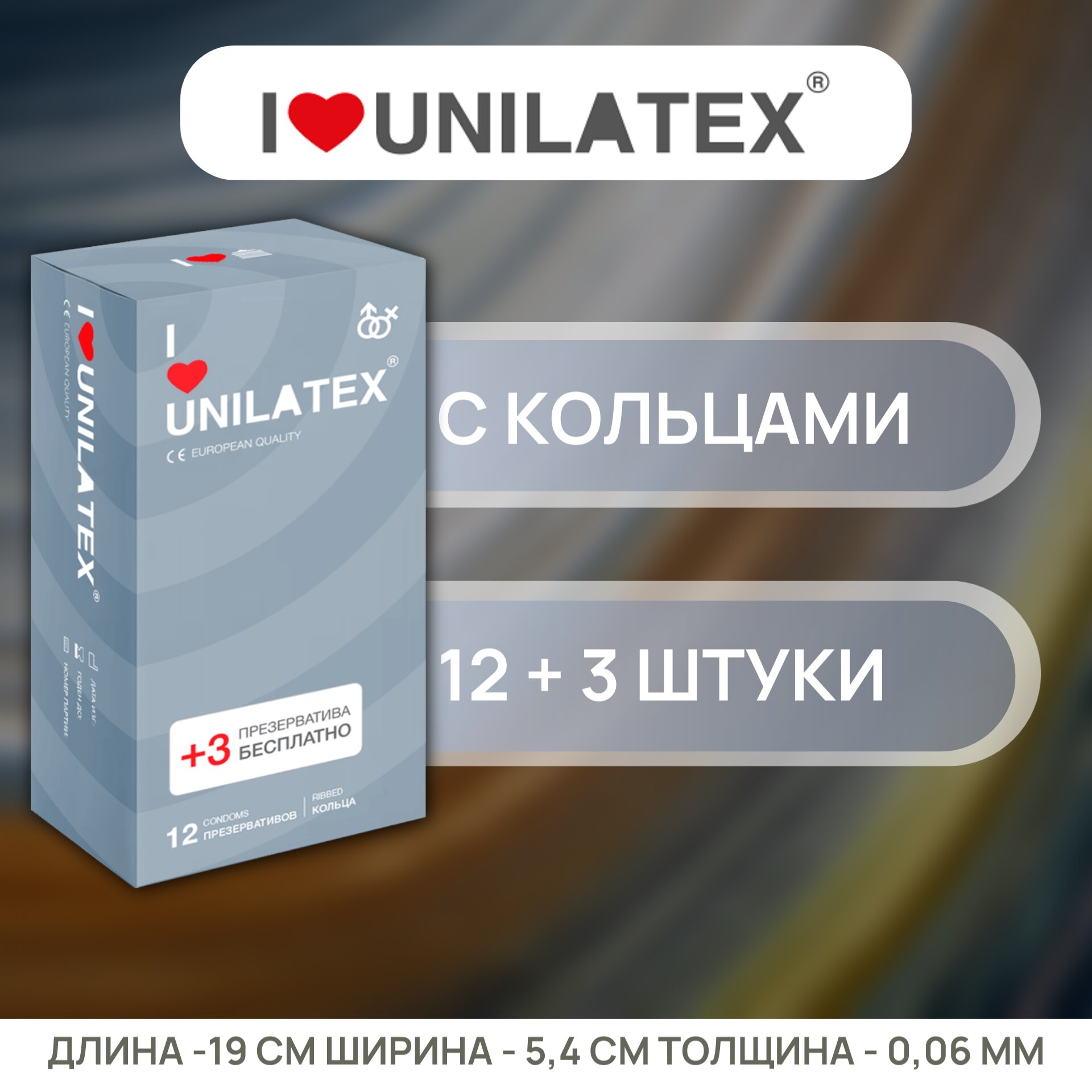 Unilatex / Презервативы Unilatex Ribbed 12+3 шт., Поверхность с кольцами.