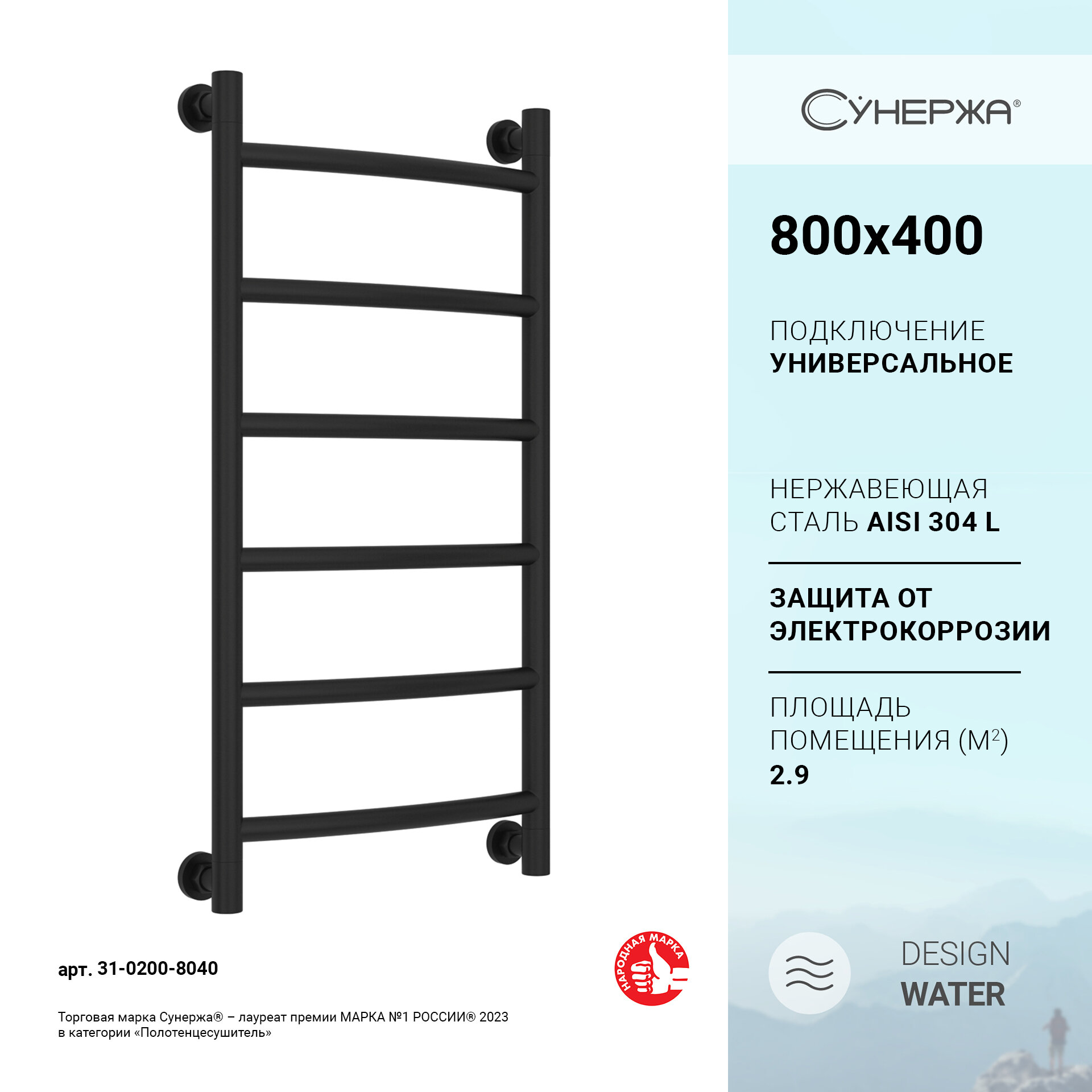СохранитьПолотенцесушитель водяной Сунержа 31-0200-8040 Галант+ Полотенцесушитель водяной 800х400 мм, матовый черный интересное: