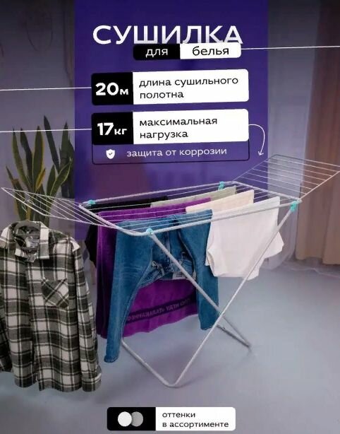 Складывается в компактную сушилку и отлично становится за шкаф и ее не видно совершенно. Если ищите недорогую сушилку, то однозначно выбирайте этот вариант. |