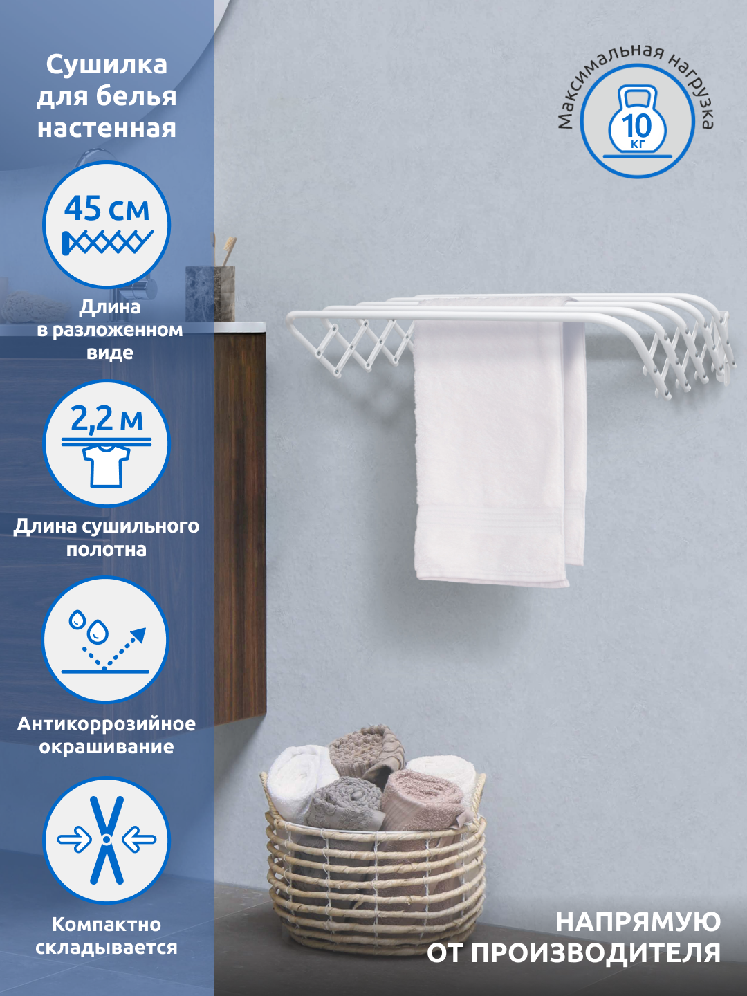 Сушилка для белья настенная раздвижная гармошка 45 см, 10 кг