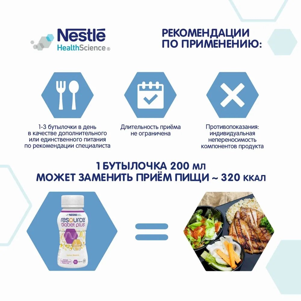 Nestle Resource Diabet Plus / Ресурс Диабет Плюс, высокобелковая молочная смесь со вкусом ванили, 200 мл х №4