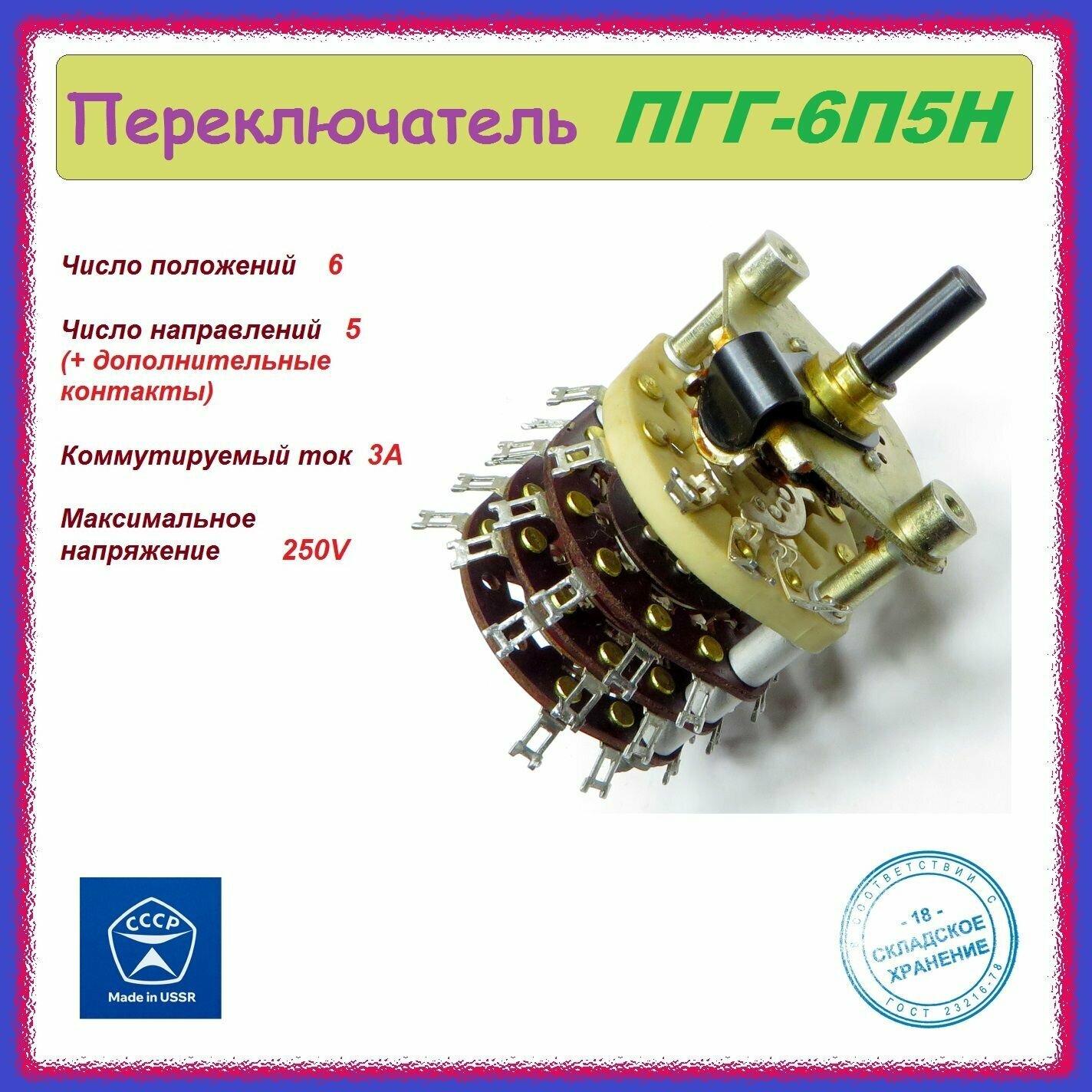 Переключатель галетный ПГГ-6П5Н (6 положений , 5 направлений + доп. контакты) . интересное:
