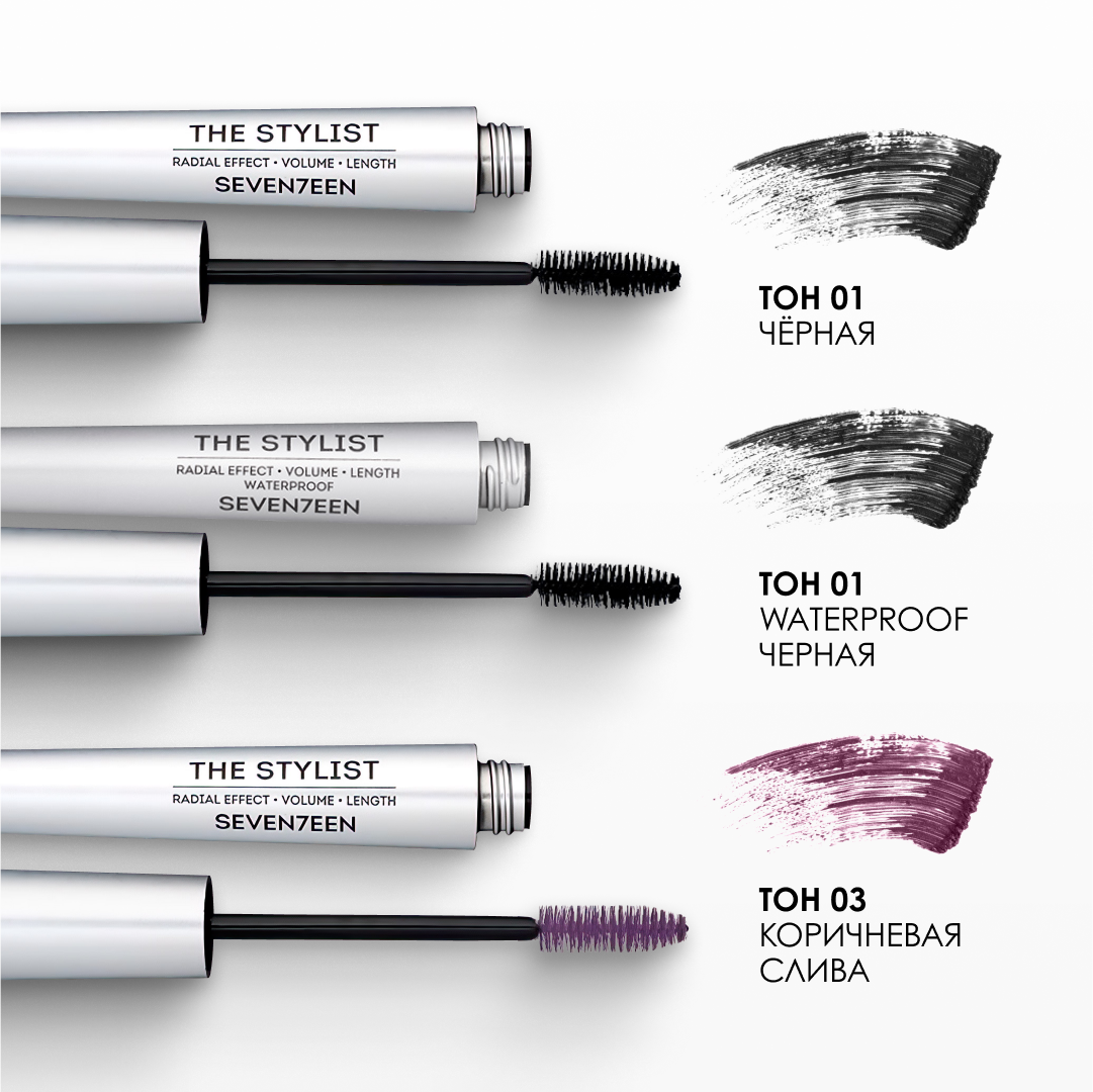 SEVENTEEN тушь для ресниц THE STYLIST удлиняющая объемная водостойкая тон 01, black (черный) 9мл