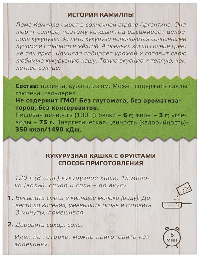 | Крупа | кукурузная |