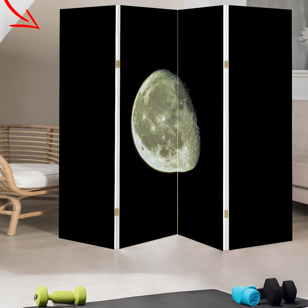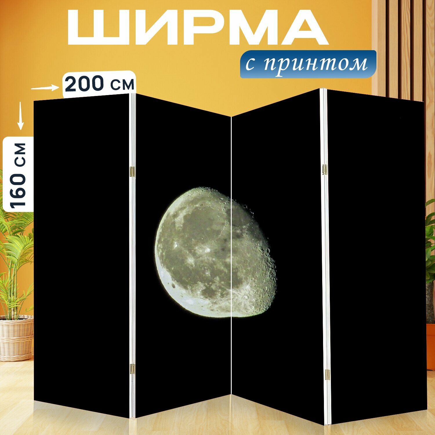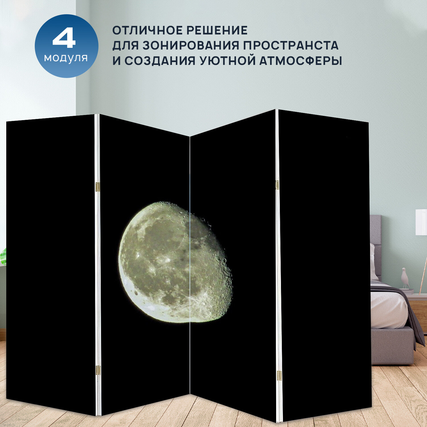 Ширма "Луна, месяц, астрономия" перегородка для зонирования комнаты с принтом 280x175 см. на холсте