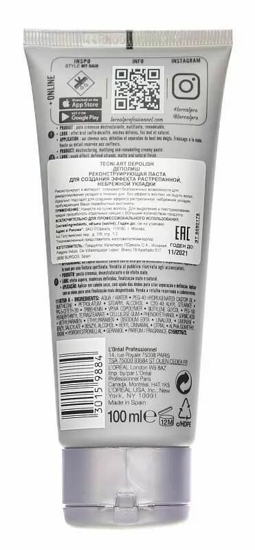 Ниже Вы можете прочитать отзывы на L'Oreal Professionnel TECNI ART Depolish 100 мл, ознакомится с подробными характеристиками, посмотреть интересные обзоры и фотографии на L'Oreal Professionnel TECNI ART Depolish 100 мл.