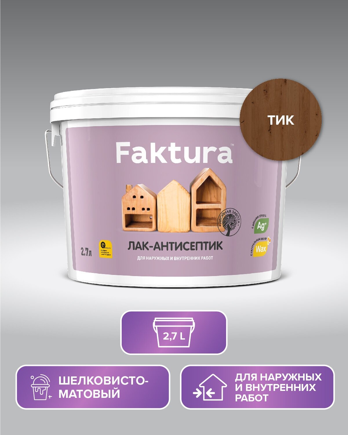 Лак Faktura, антисептик, полуматовый, полиакриловый, бесцветный, для внутренних и наружных работ, 2.7 л