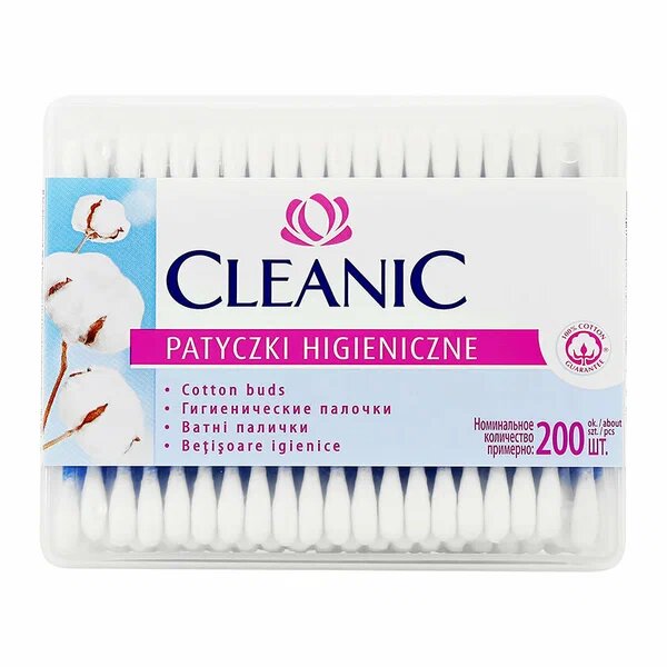 Cleanic Ватные палочки гигиенические в прямоугольной коробке, 200 шт