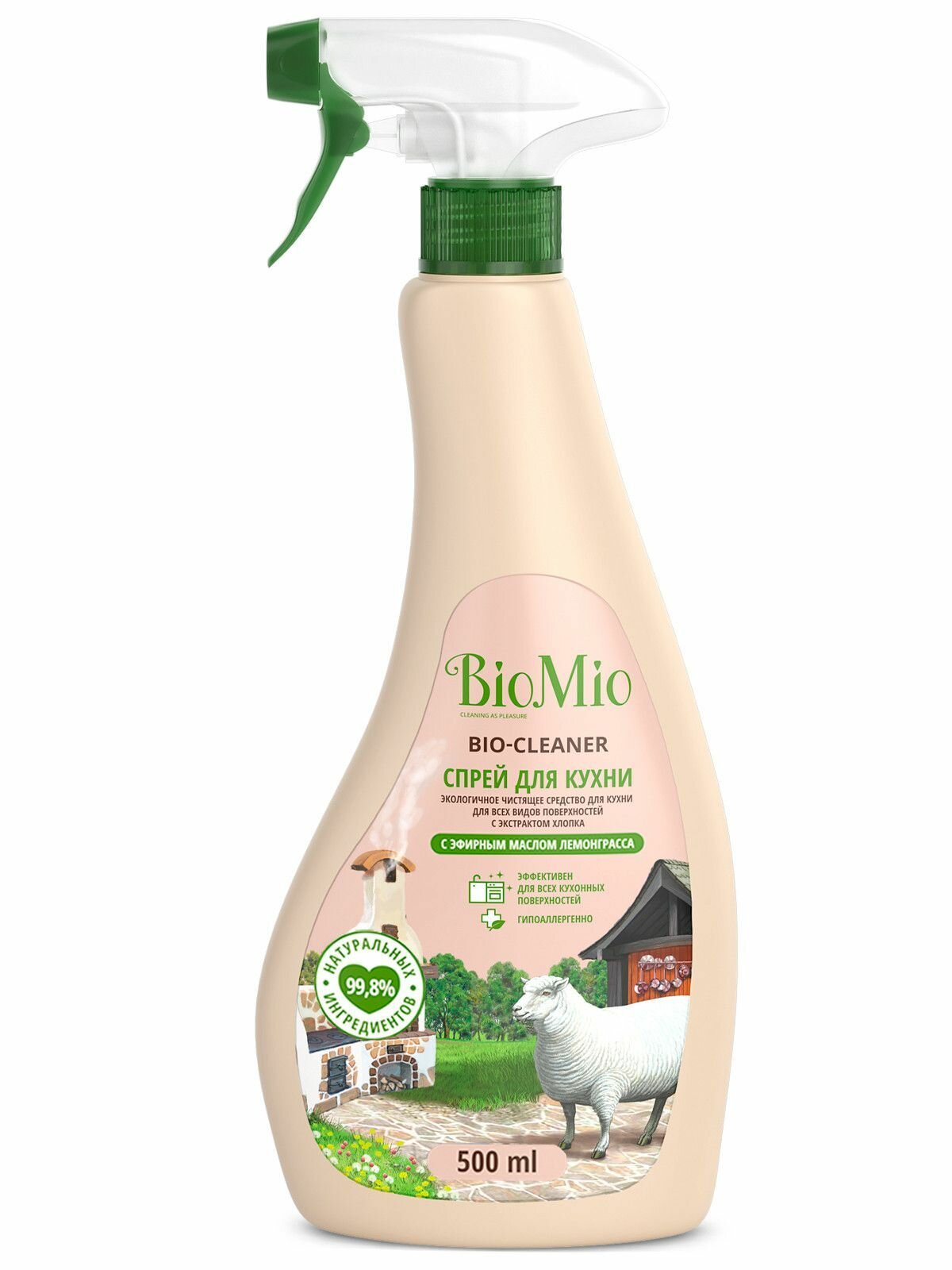 Чистящий спрей для кухни BioMio BIO-CLEANER с ароматом лемонграсса, гипоаллергенный, экологичный, 500 мл