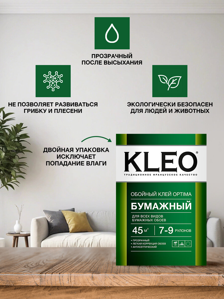 KLEO OPTIMA Обойный клей для любых бумажных обоев (сыпучий, 45 м2)